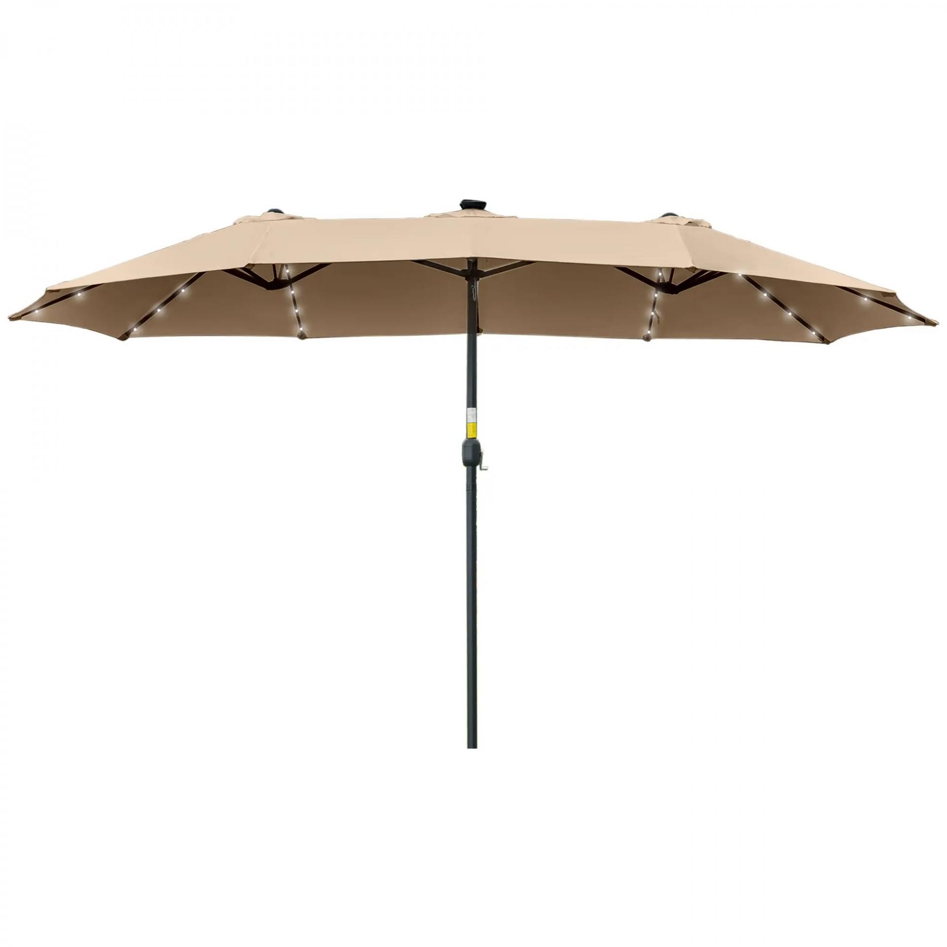 Sombrilla Doble 450x265x240 cm con 48 Luces LED Manivela Protección Solar para Terraza Balcón Piscina Caqui