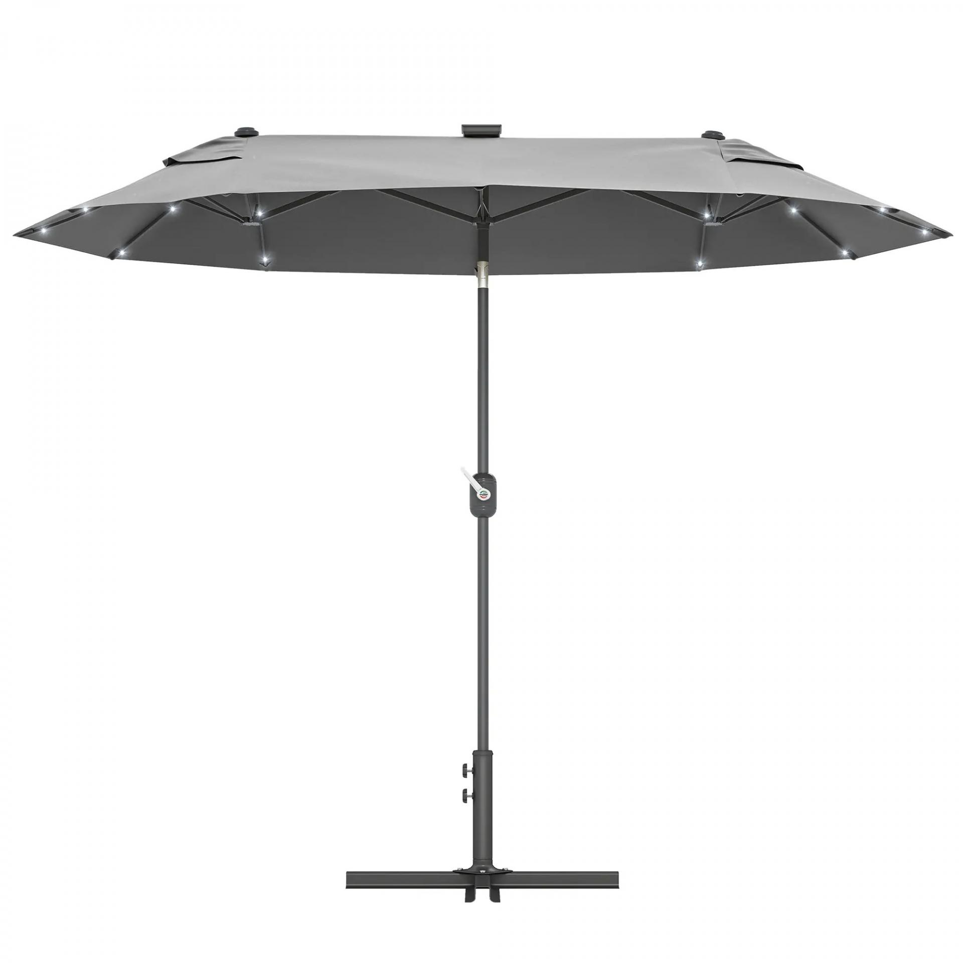 Sombrilla de Jardín Doble 295x150x219 cm con Luces LED Solares Toldo con Inclinación Ajustable y Manivela Manual Gris