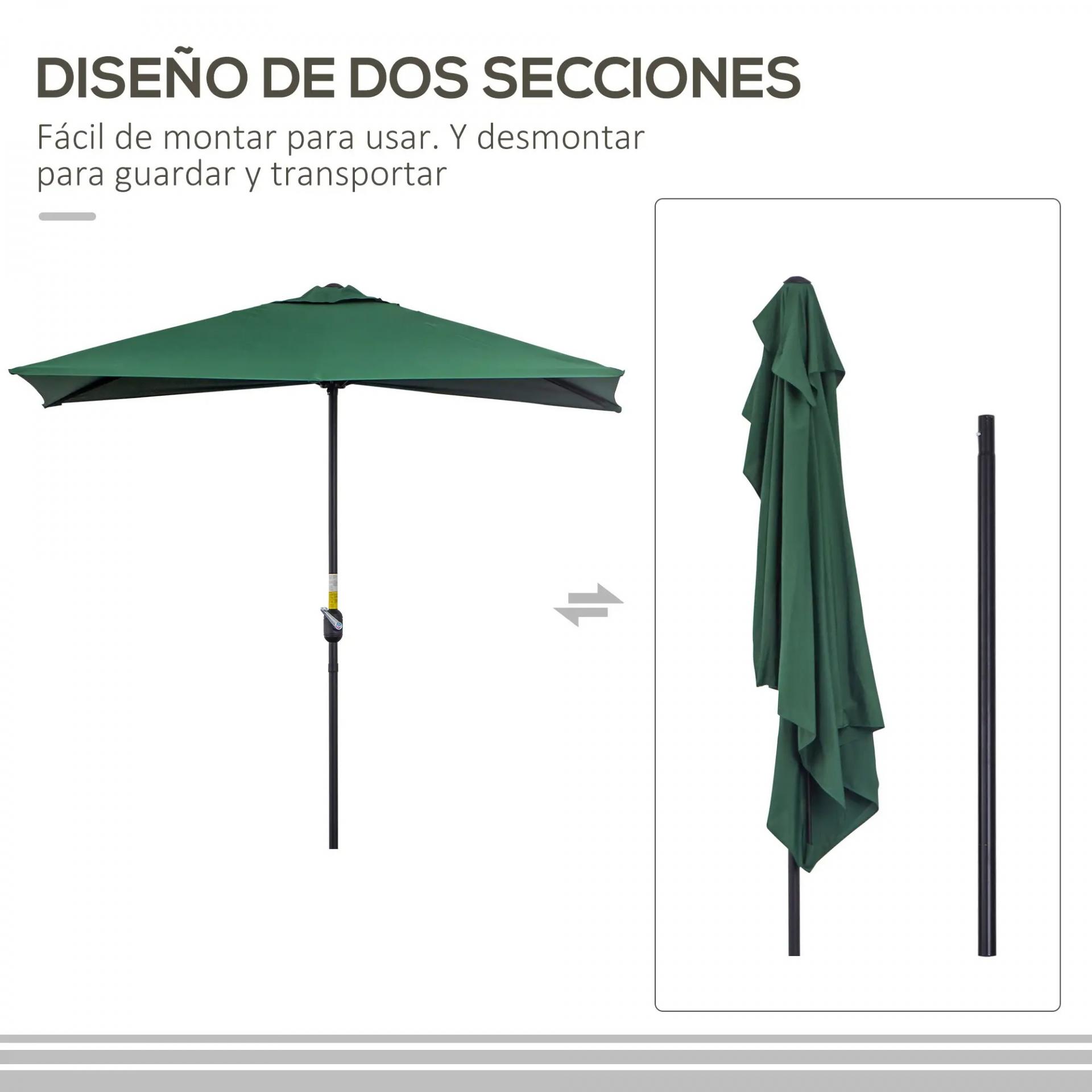 - MEDIA SOMBRILLA DE EXTERIOR: Esta sombrilla de forma casi rectangular es ideal para para colocar a ras de una pared o puerta de cristal y disfrutar de una zona de sombra en tu jardín, terraza, patio, etc.