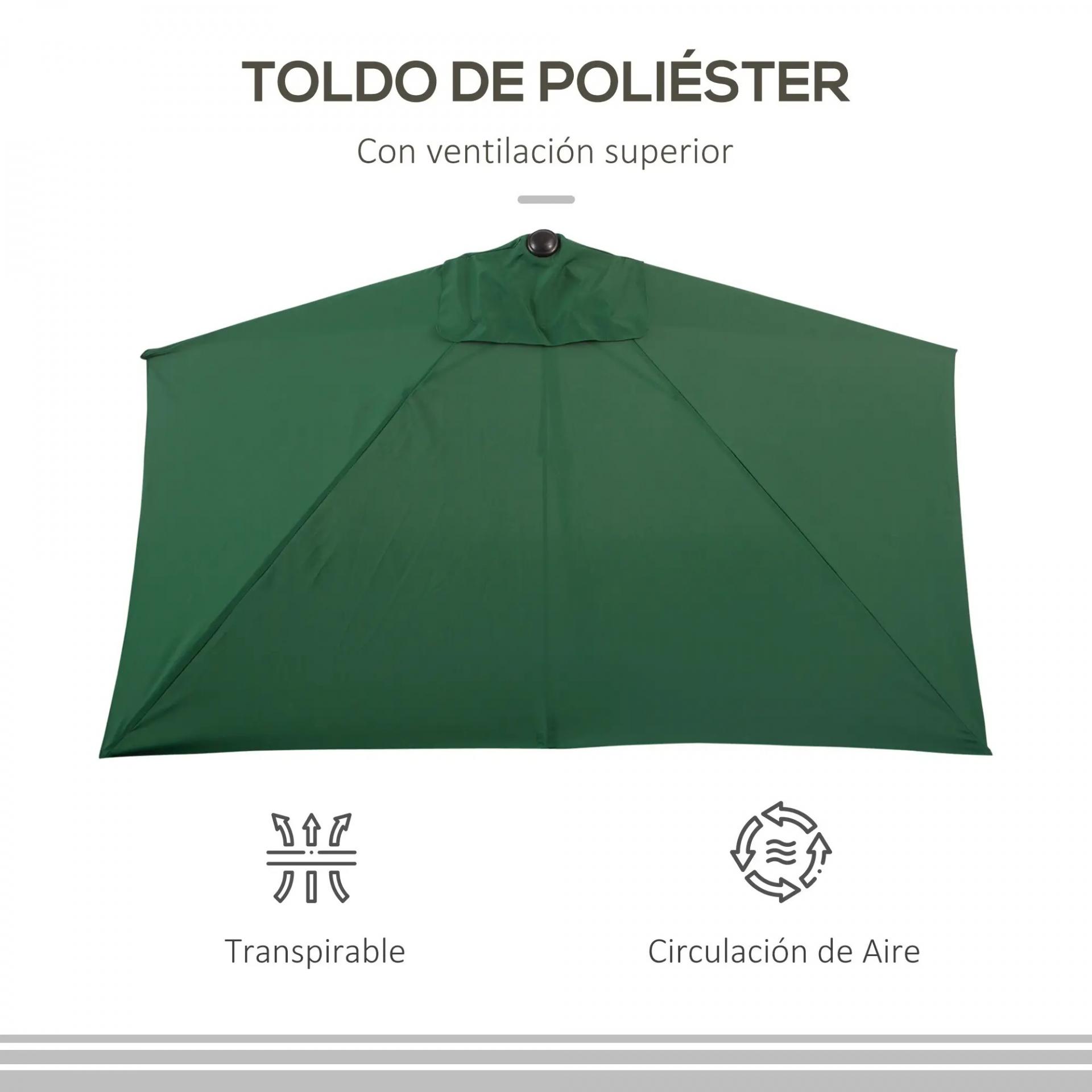 Parasol para Pared 230x130x245 cm Media Sombrilla con Manivela Protección UV 30+ Impermeable Verde