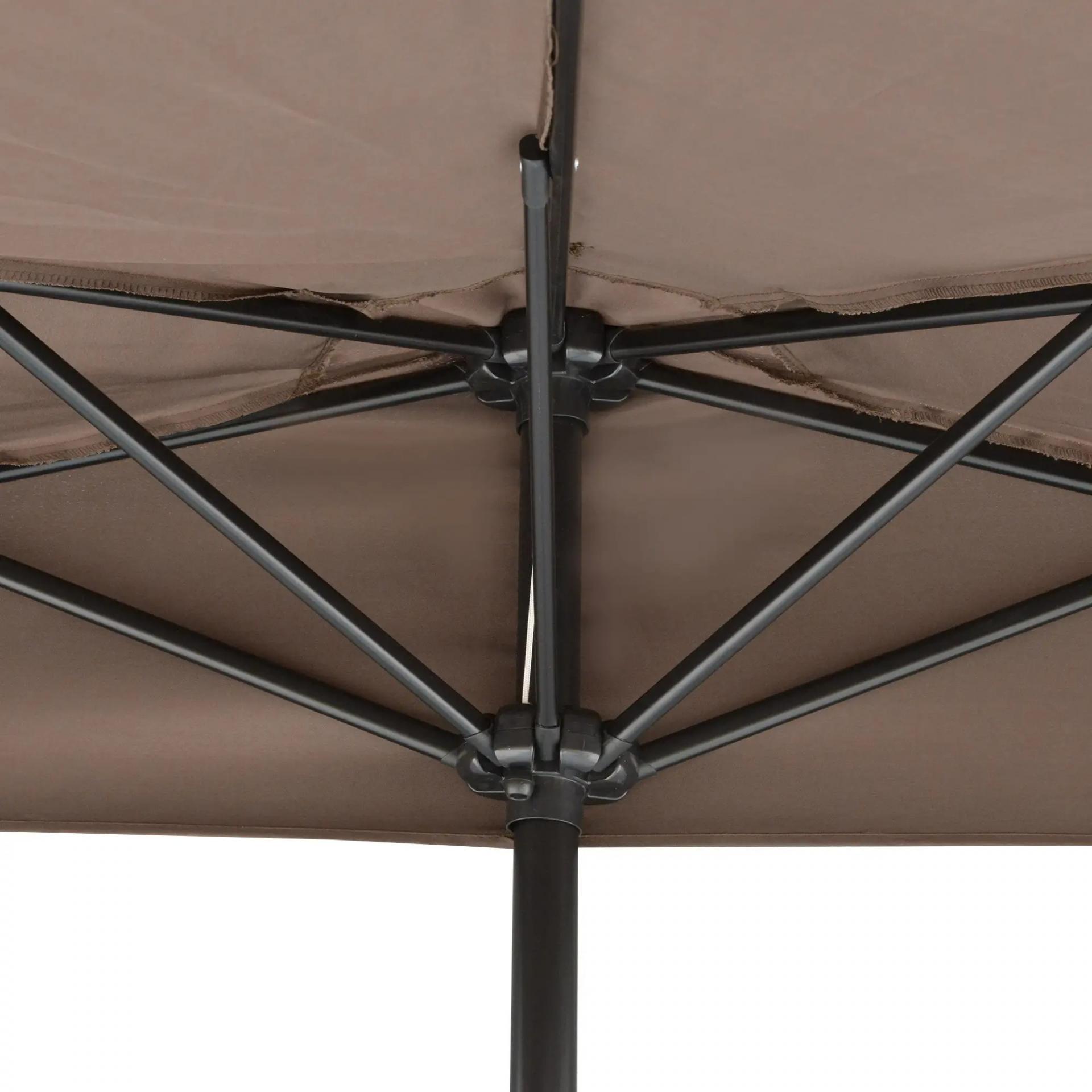 Sombrilla 269x138x236 cm Parasol de Jardín con Manivela y Forma Semicircular Tela Poliéster 180 g/m² para Exterior Terraza Patio Piscina Café