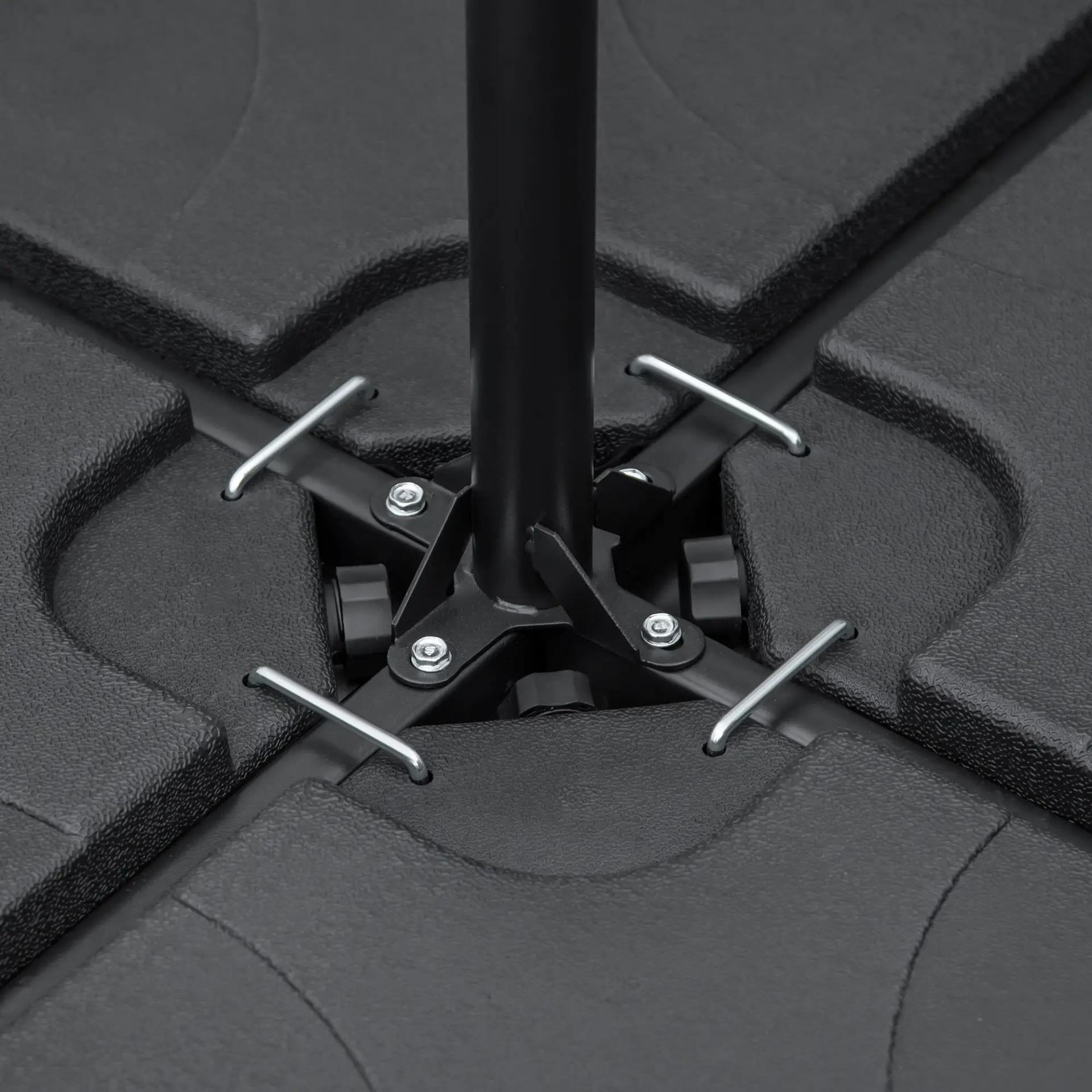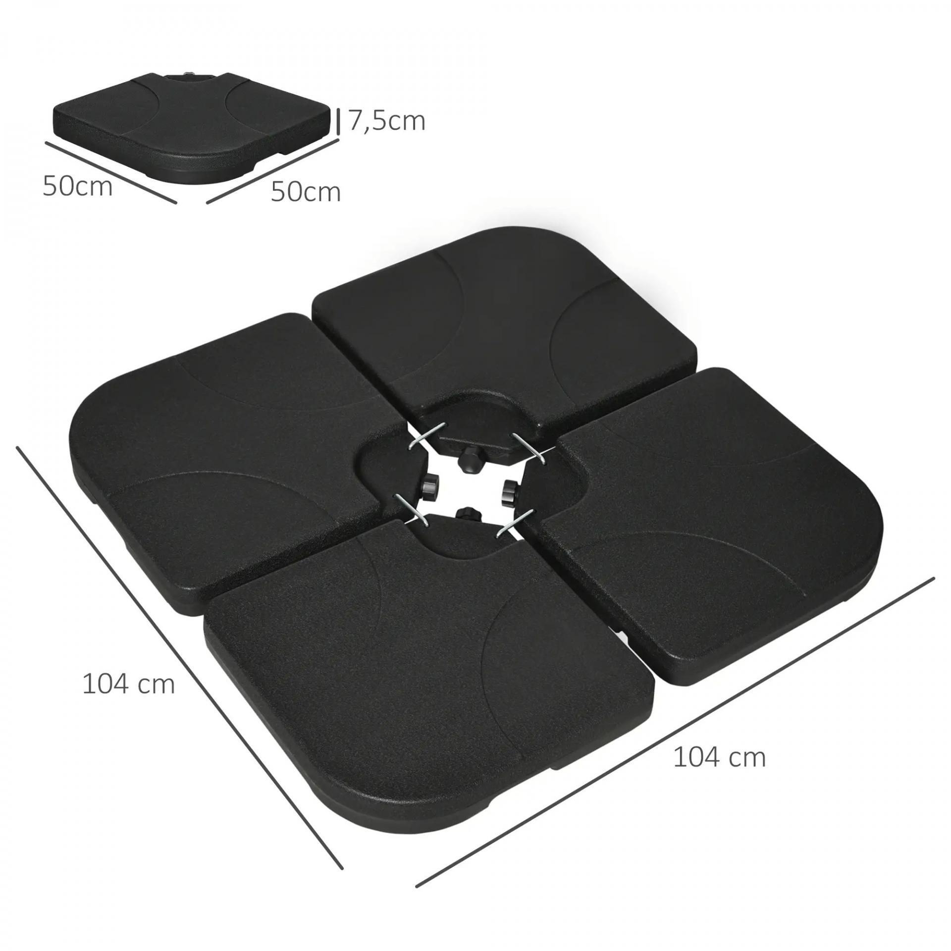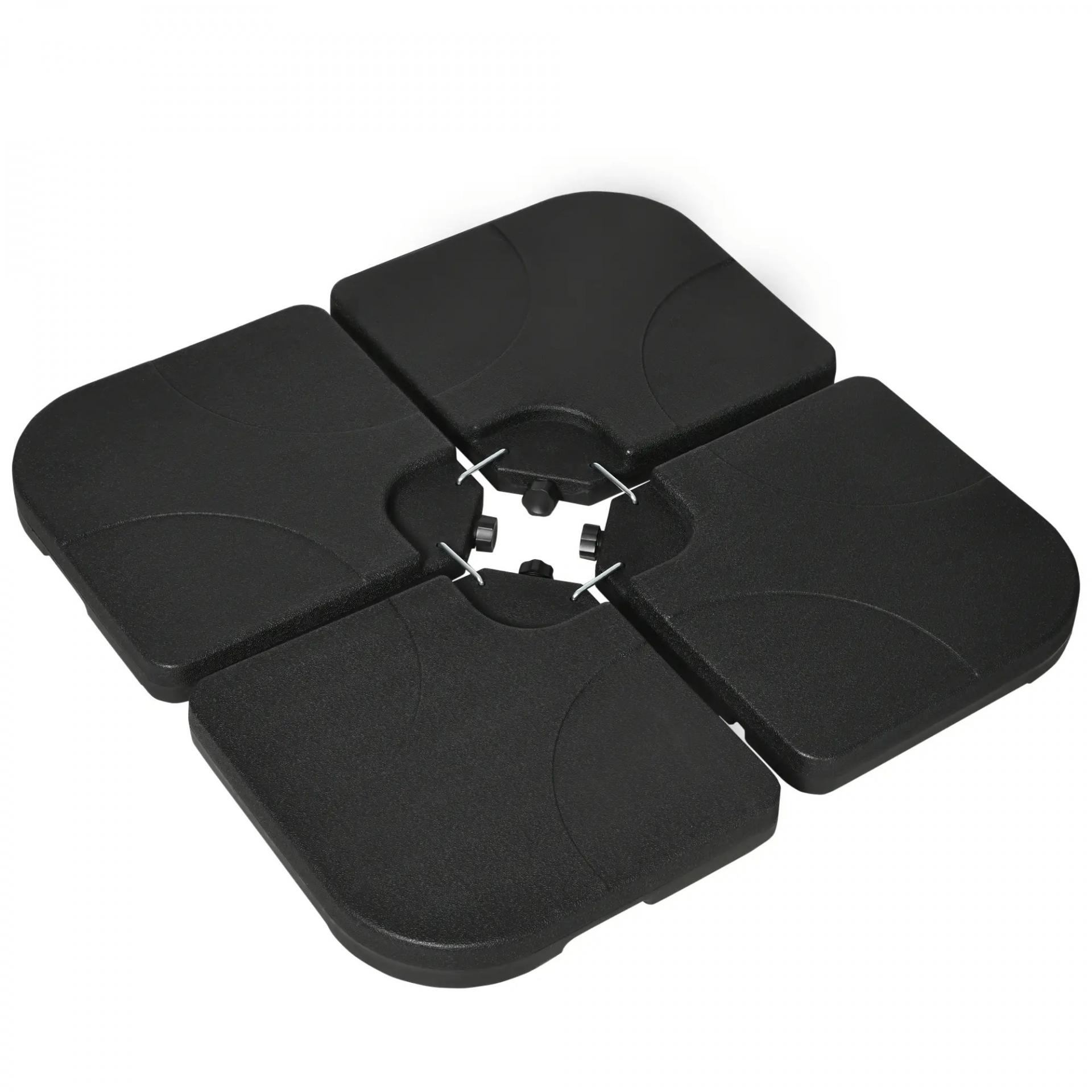 Conjunto de 4 Pesos Rellenables para Base de Sombrilla Cruzada con 15 Litros de Agua o 19,5 kg de Arena Negro