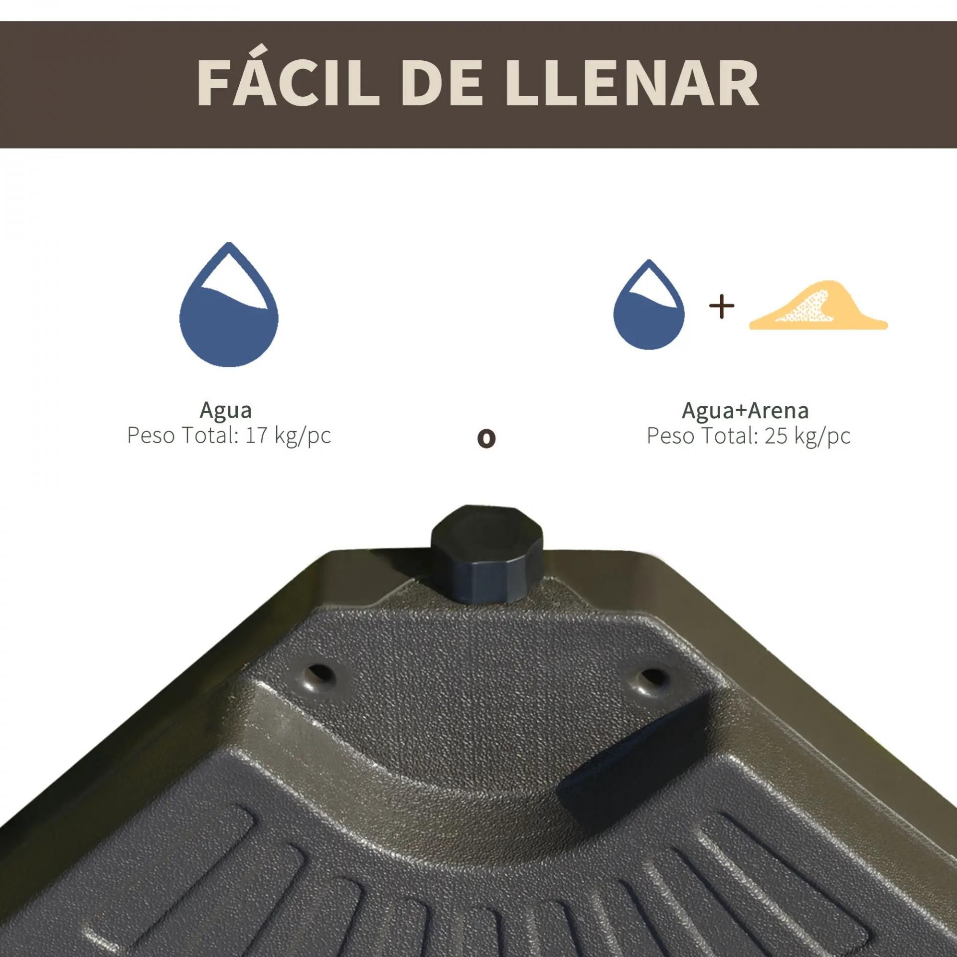 - 4 PESOS PARA BASE DE SOMBRILLA CRUZADA: Estos pesos para sombrilla están especialmente diseñados para aquellos modelos que ya vienen con la base cruzada (la base cruzada en este producto NO está incluida) y normalmente son parasoles excéntricos. Perfecta para tu jardín, terraza, patio, etc.
