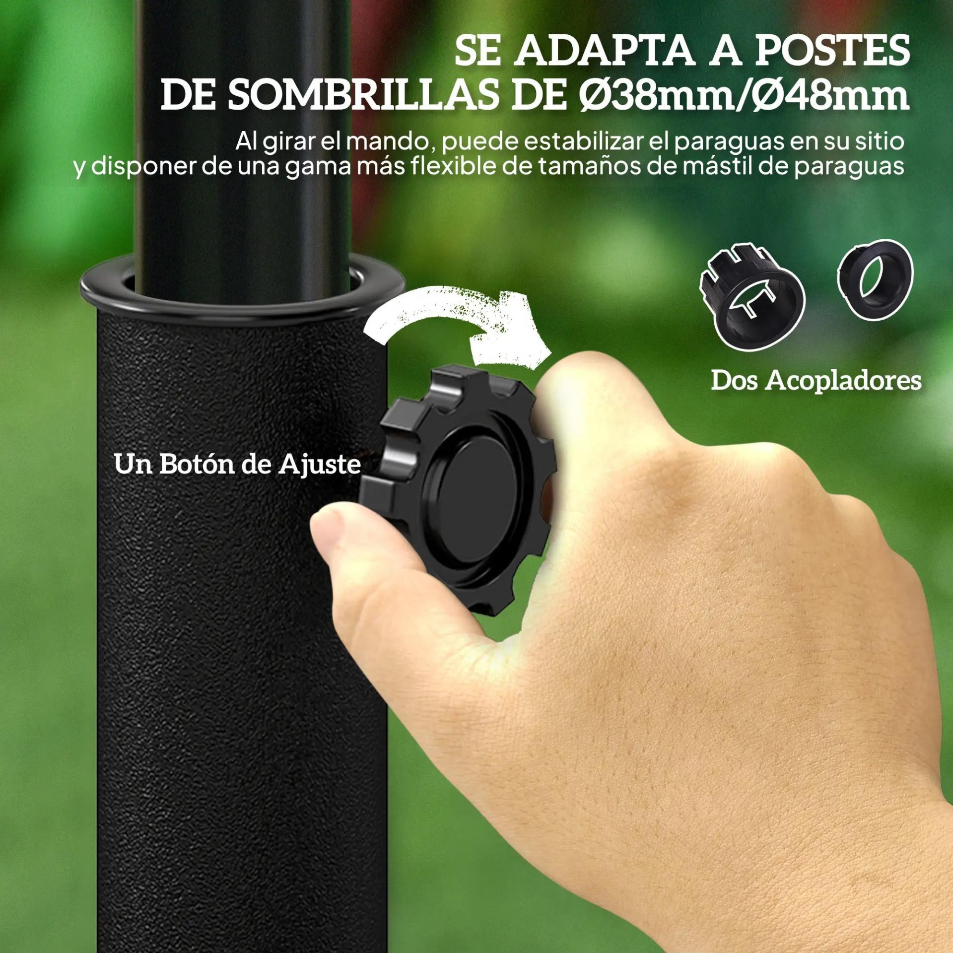 - - AJUSTABLE: Esta base de sombrilla para terraza exterior cuenta con una manivela ajustable para adaptarse a postes con diámetros de 38 mm y 48 mm. Es ideal para mantener tu sombrilla estable en tu jardín, terraza, patio o cerca de la piscina