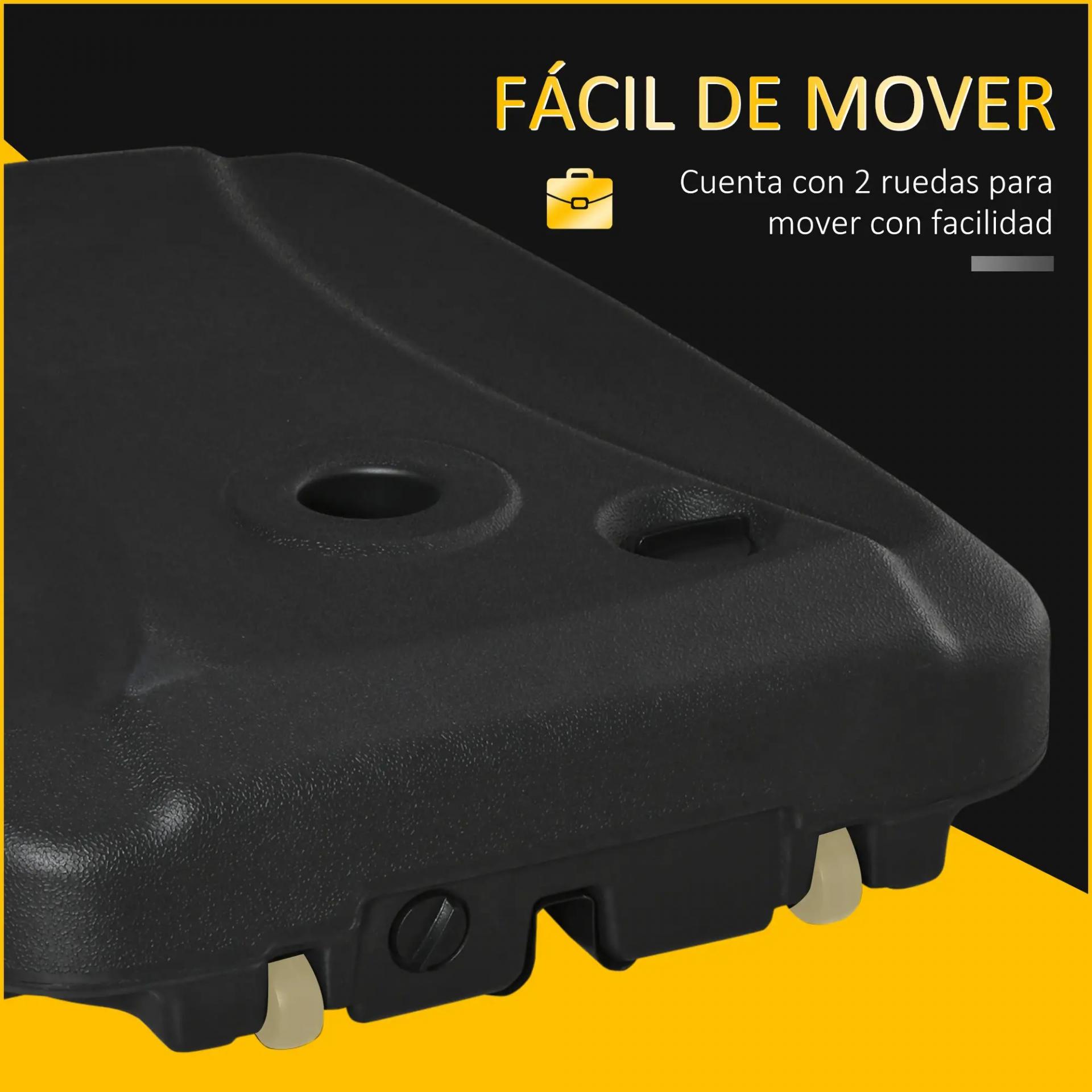Base de Sombrilla con 2 Ruedas Rellenable de Agua 60 kg Arena 68 kg o Mixto 75 kg 80x60x17 cm Negro