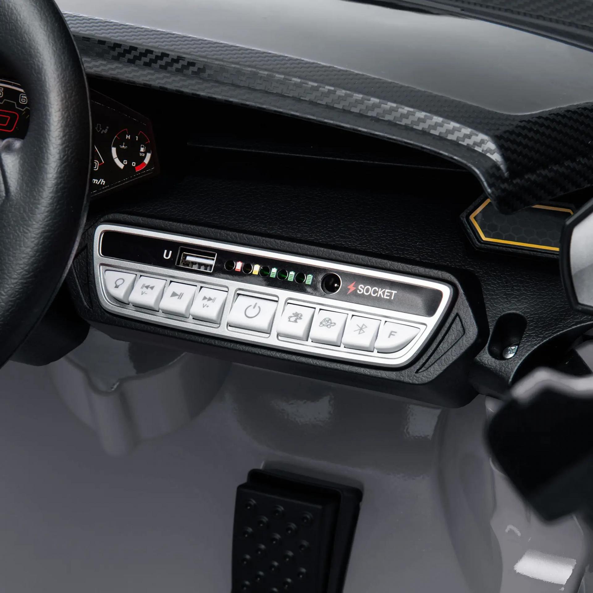 Coche Eléctrico para Niños Lamborghini Autentica con Batería 12V Mando a Distancia Faros Bocina Arranque Suave y Música MP3 Gris