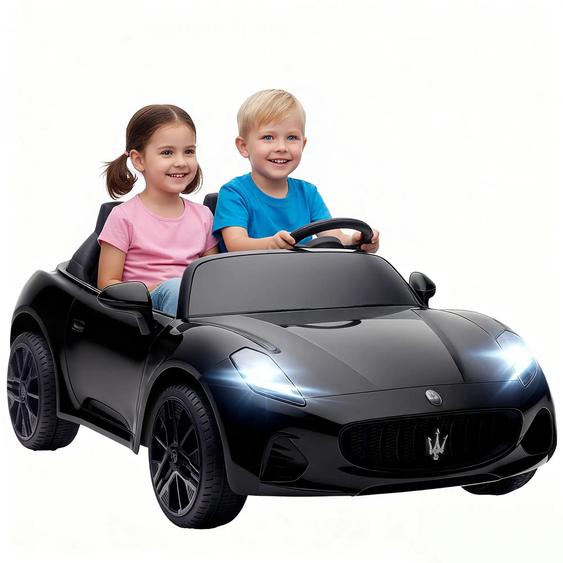 Coche Eléctrico Maserati para Niños, 2 Plazas, 12V, Control Parental, LED y Música, Negro