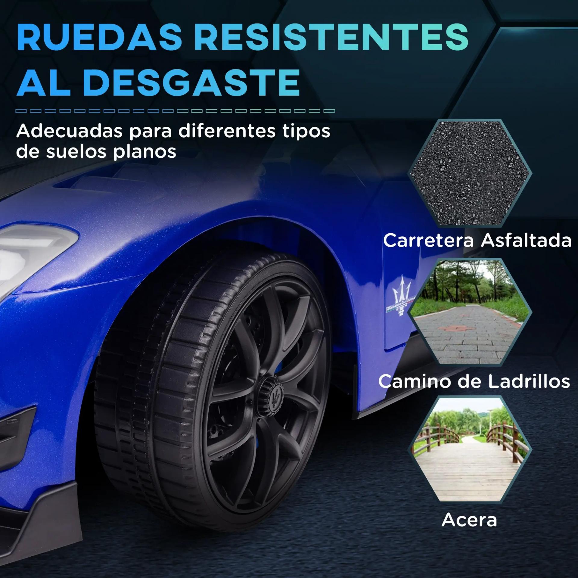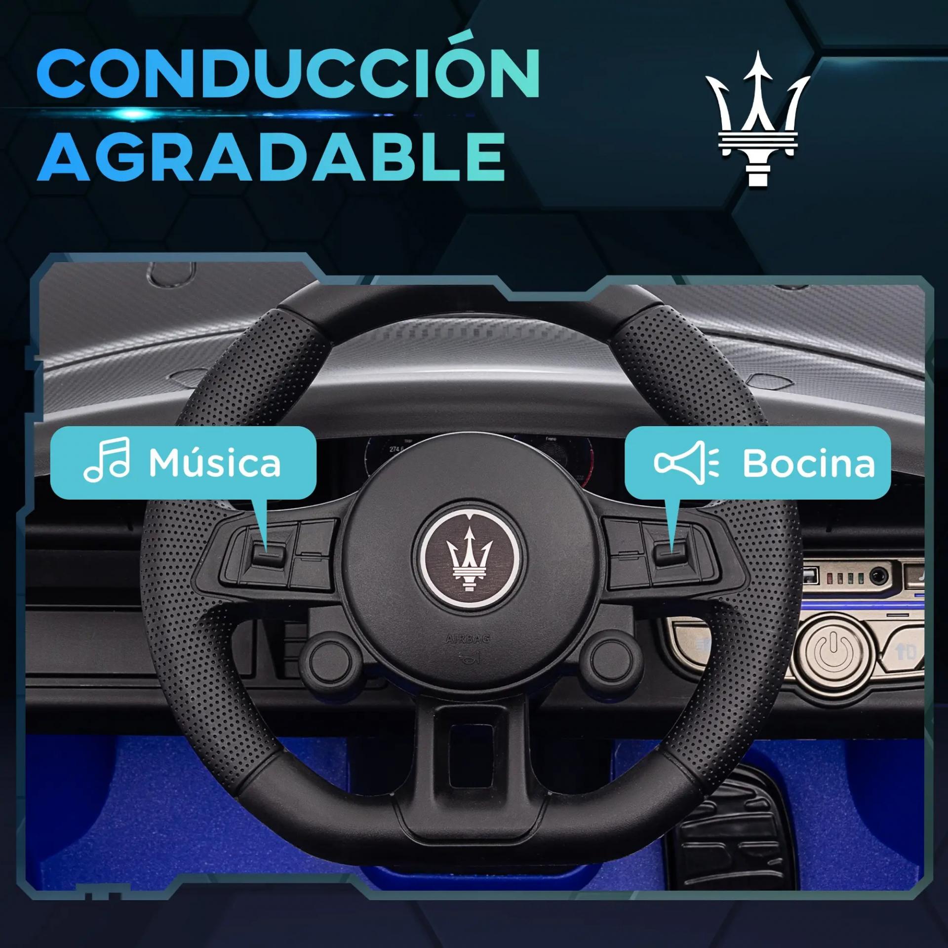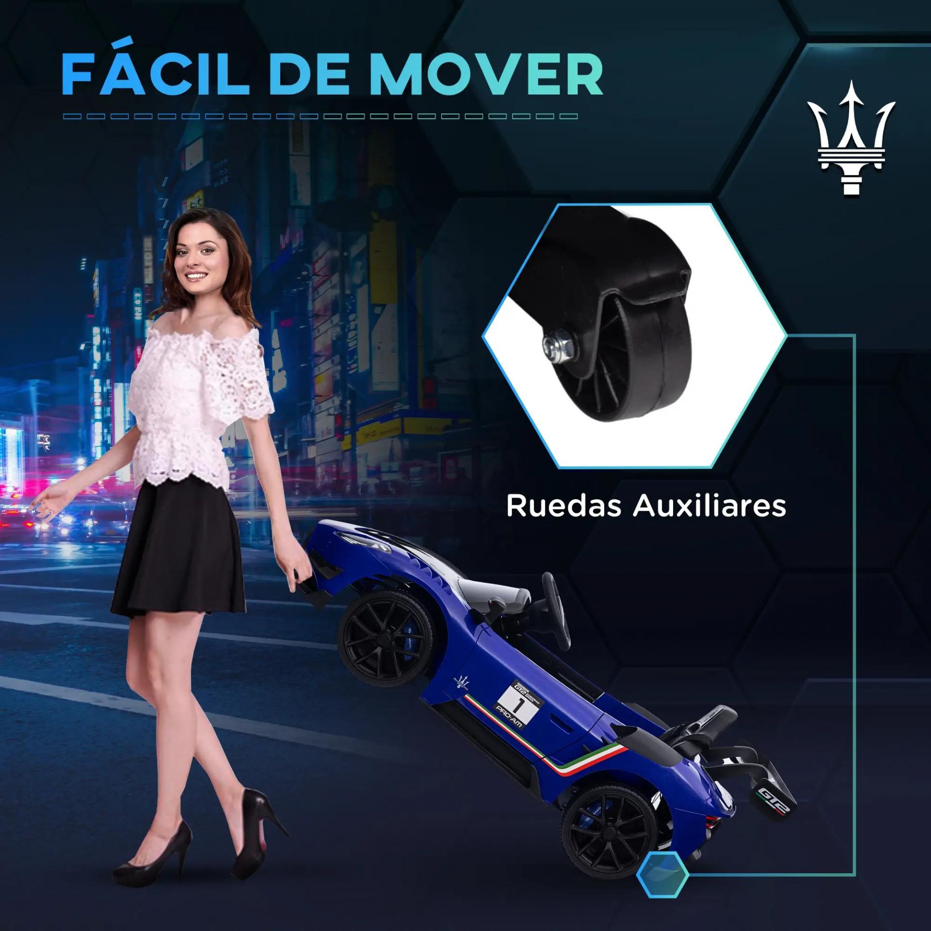 Coche Eléctrico para Niños de +3 Años Maserati GT2 con Mando a Distancia Faros LED Bocina Música Ruedas Auxiliares Azul