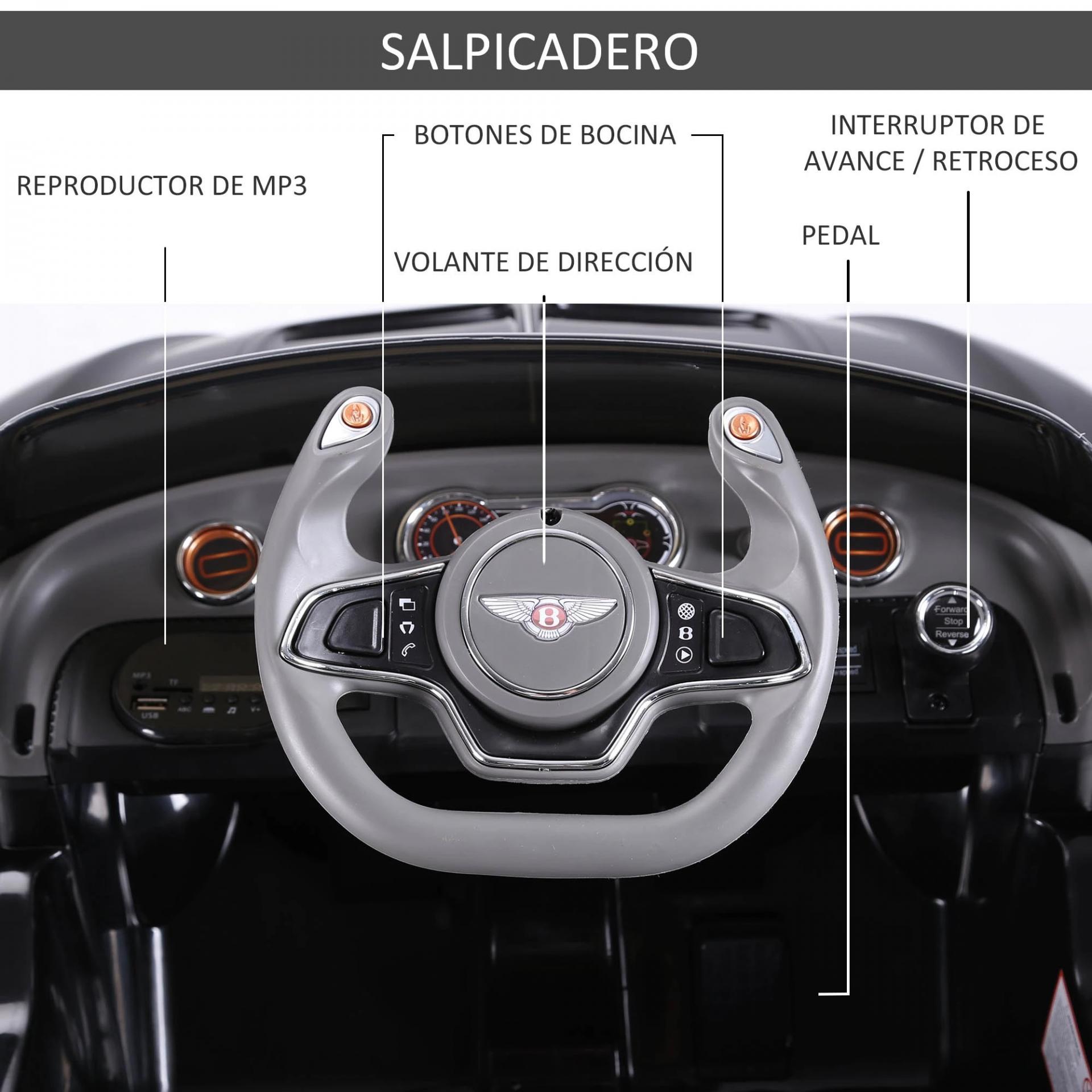 Coche Eléctrico para Niños Bentley GT Coche de Batería para Niños de +3 Años Velocidad 2,5-5 km/h 108x60x43 cm Negro