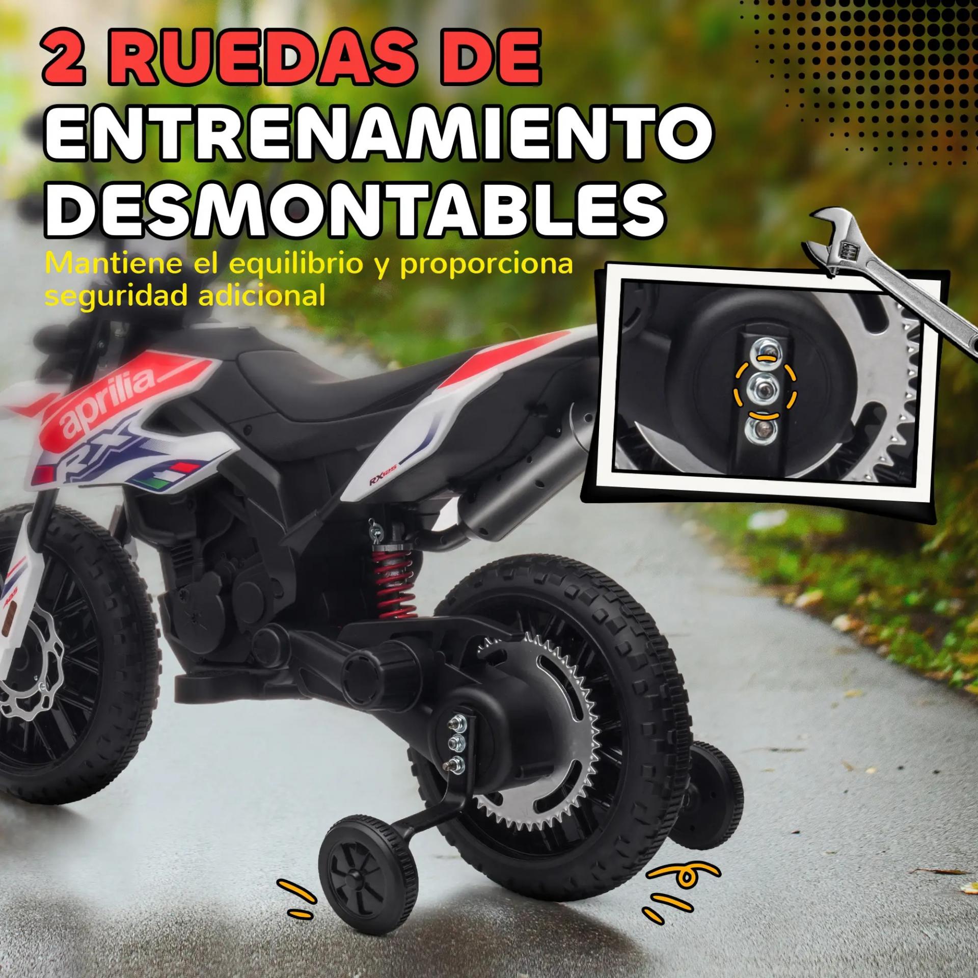 Moto Eléctrica para Niños 12V con Licencia Aprilia con Ruedas Auxiliares Desmontables 6 km/h Suspensión Trasera Blanco