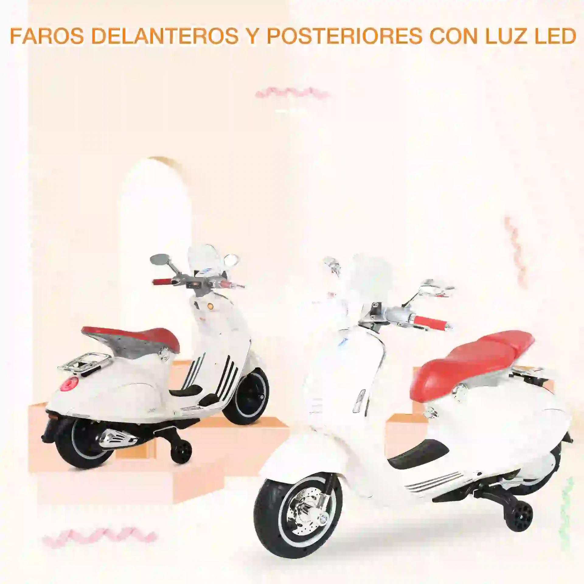 Moto de Batería Autorizada de VESPA con Faros Música 2 Ruedas Auxiliares 108x49x75 cm Blanco