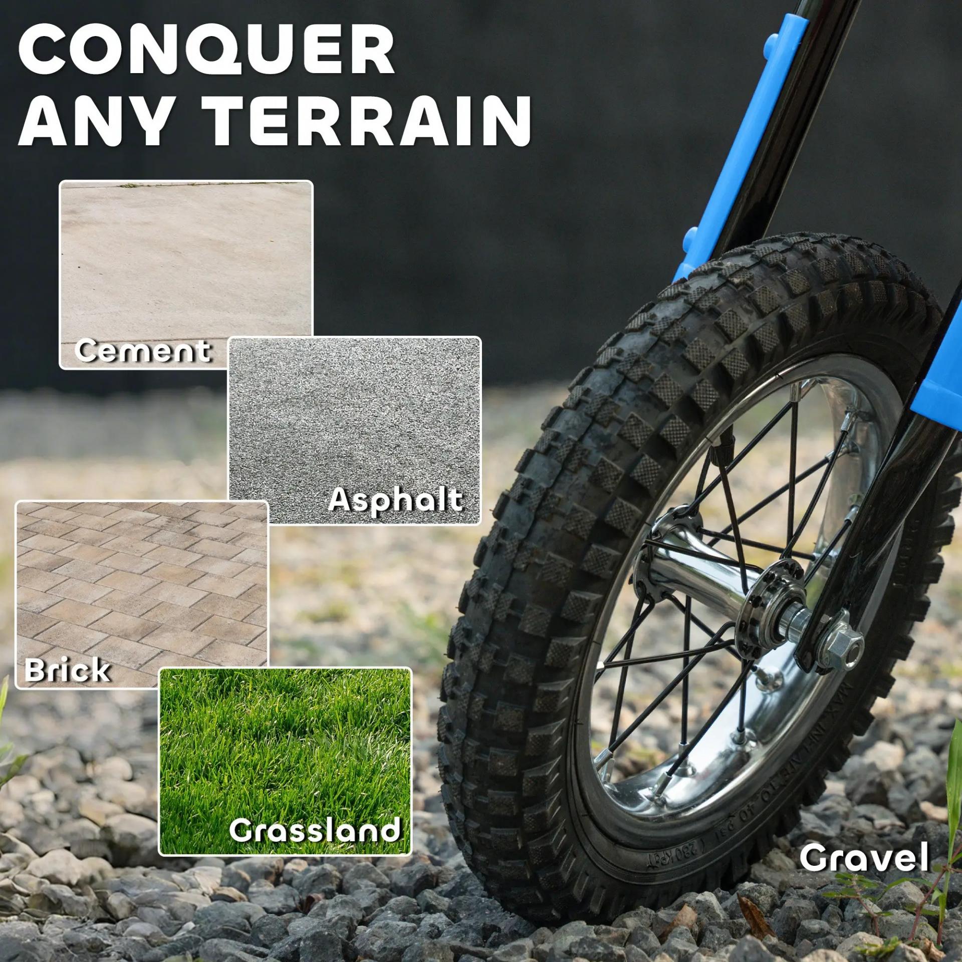 Moto Eléctrica para Niños 24V con Motor 250W Velocidad de 6-16km/h Ruedas de 12'' para Niños de 8-12 Años Azul