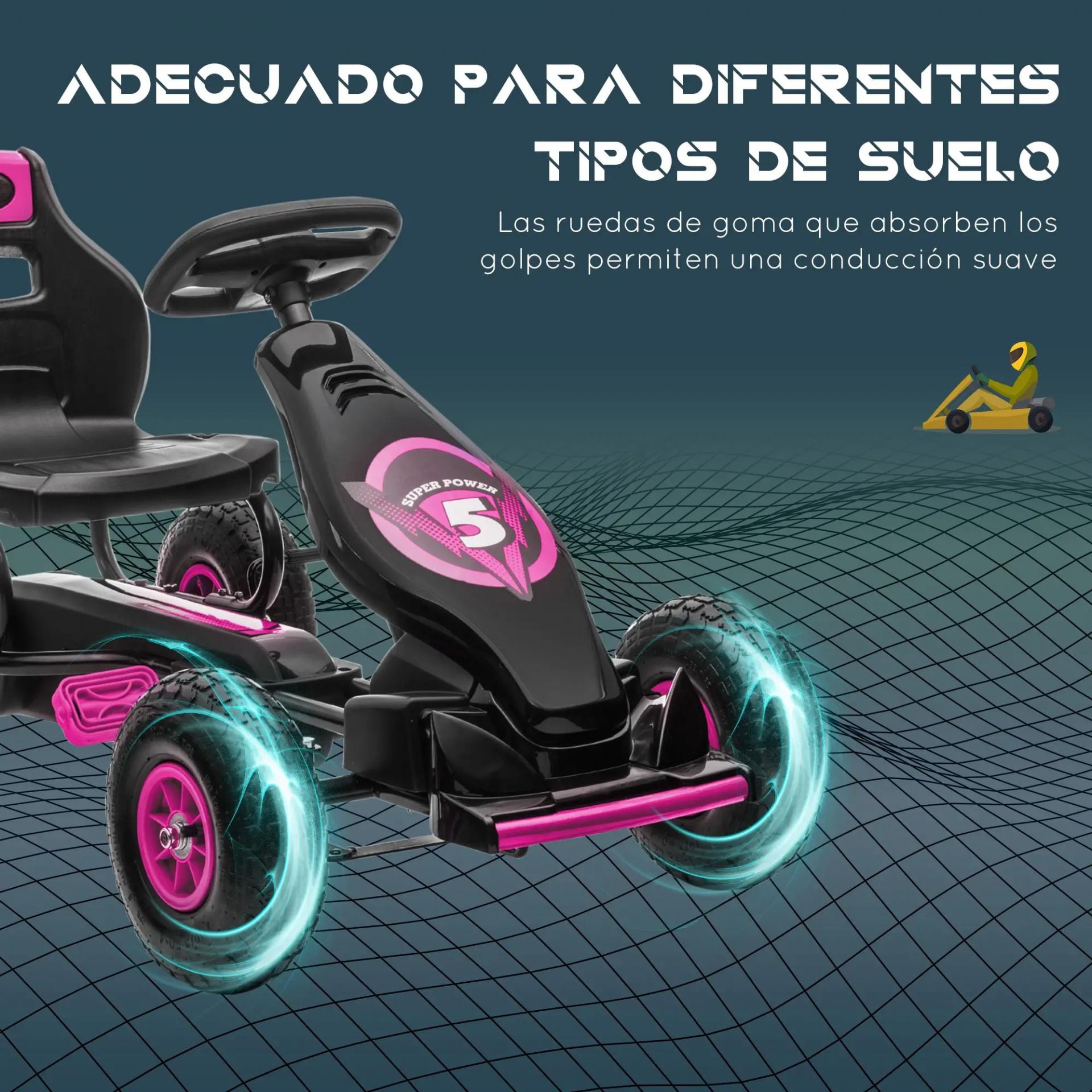 Coche de Pedales para Niños de 5-12 Años con Asiento Ajustable Neumáticos Inflables Amortiguador Carga 50kg Negro y Rosa
