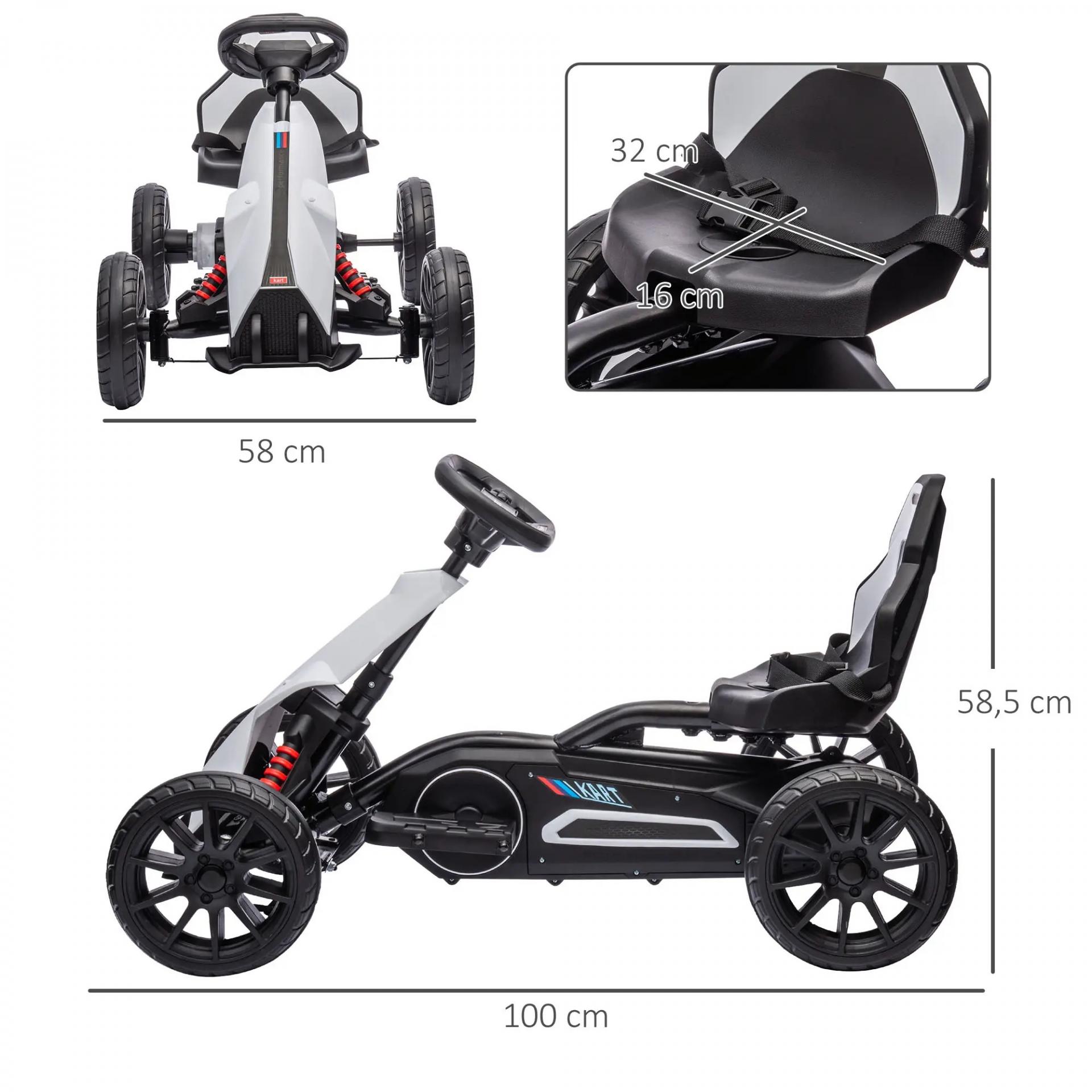 Kart Coche Eléctrico Infantil 12V de 3 a 8 Años Velocidad 3-5km/h y Cinturón de Seguridad 100x58x58,5cm Blanco