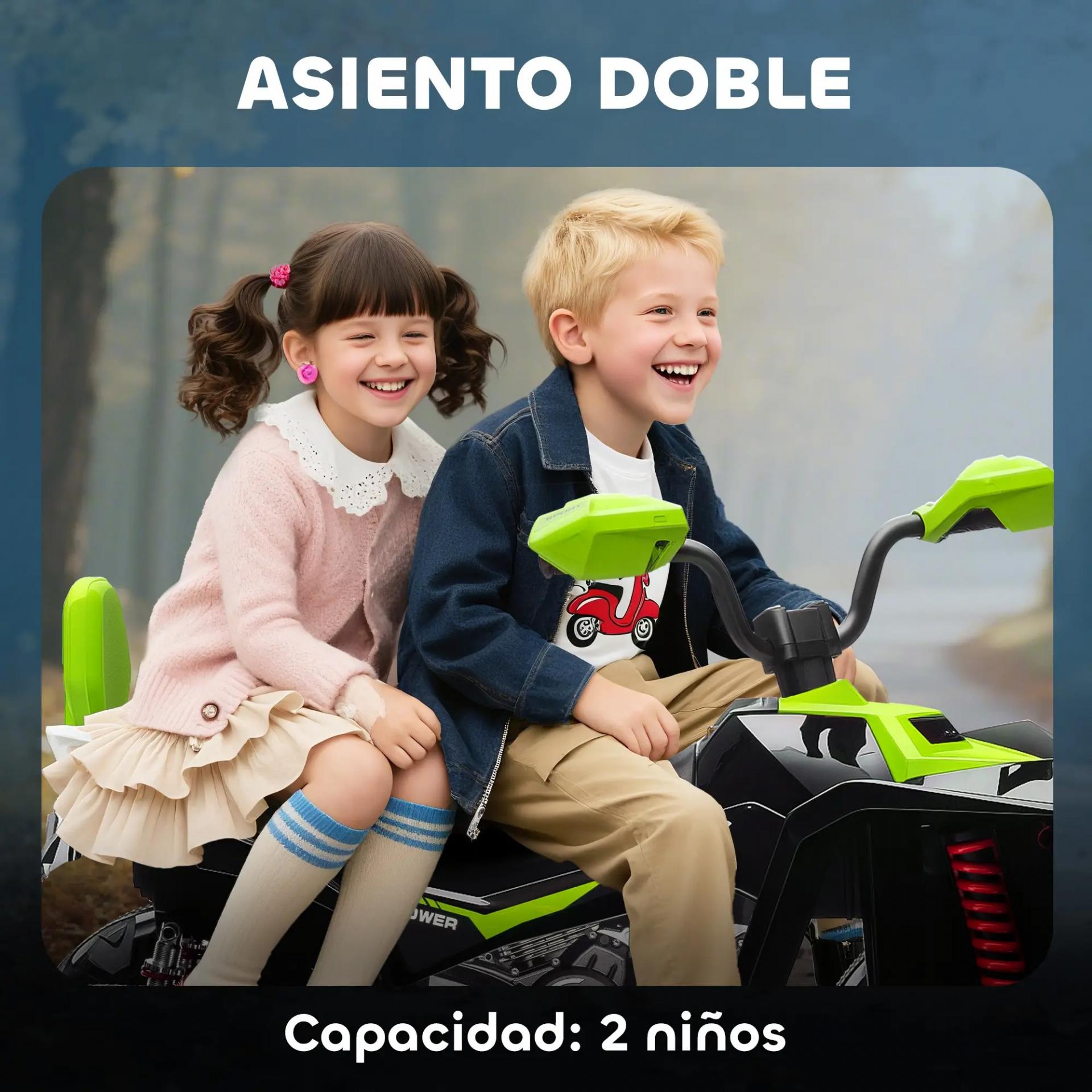- DIVERSIÓN COMPARTIDA: Este quad eléctrico para niños cuenta con un amplio asiento para dos pasajeros y soporta hasta 50 kg, ideal para compartir la experiencia con un hermano o un amigo y crear recuerdos inolvidables en el jardín o el parque