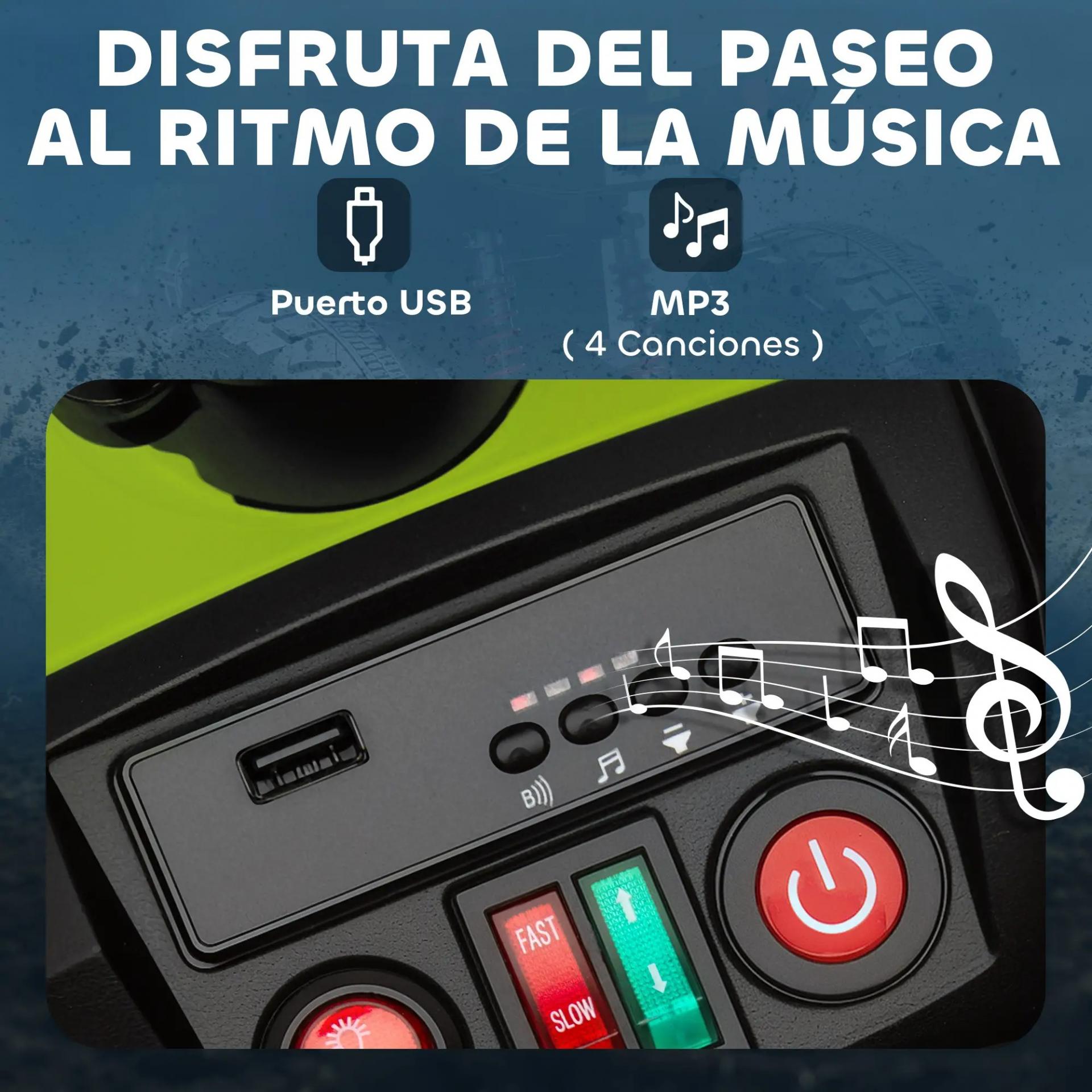 - MÚSICA Y LUCES PARA MÁS DIVERSIÓN: El quad eléctrico incorpora un puerto USB, canciones integradas y compatibilidad con MP3, además de faros delanteros que mejoran la visibilidad al anochecer para paseos seguros y entretenidos