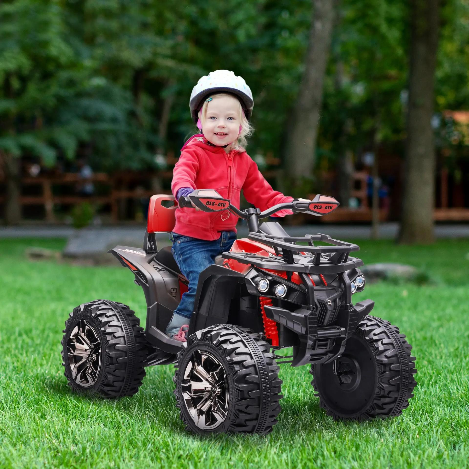Quad Eléctrico 12V para Niños +3 Años con 2 Motores Faros Música Neumáticos de Suspensión Botones Avance y Retroceso Vehículo Eléctrico a Batería 100x65x73 cm Rojo