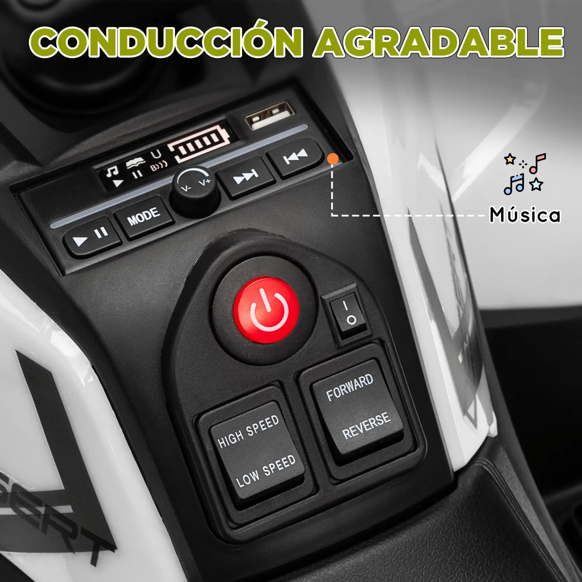 - FUNCIONES DE ENTRETENIMIENTO: Equipado con cuatro faros, música y una entrada USB, este quad para niños no solo proporciona una experiencia de conducción emocionante, sino también la posibilidad de escuchar sus canciones favoritas mientras juegan