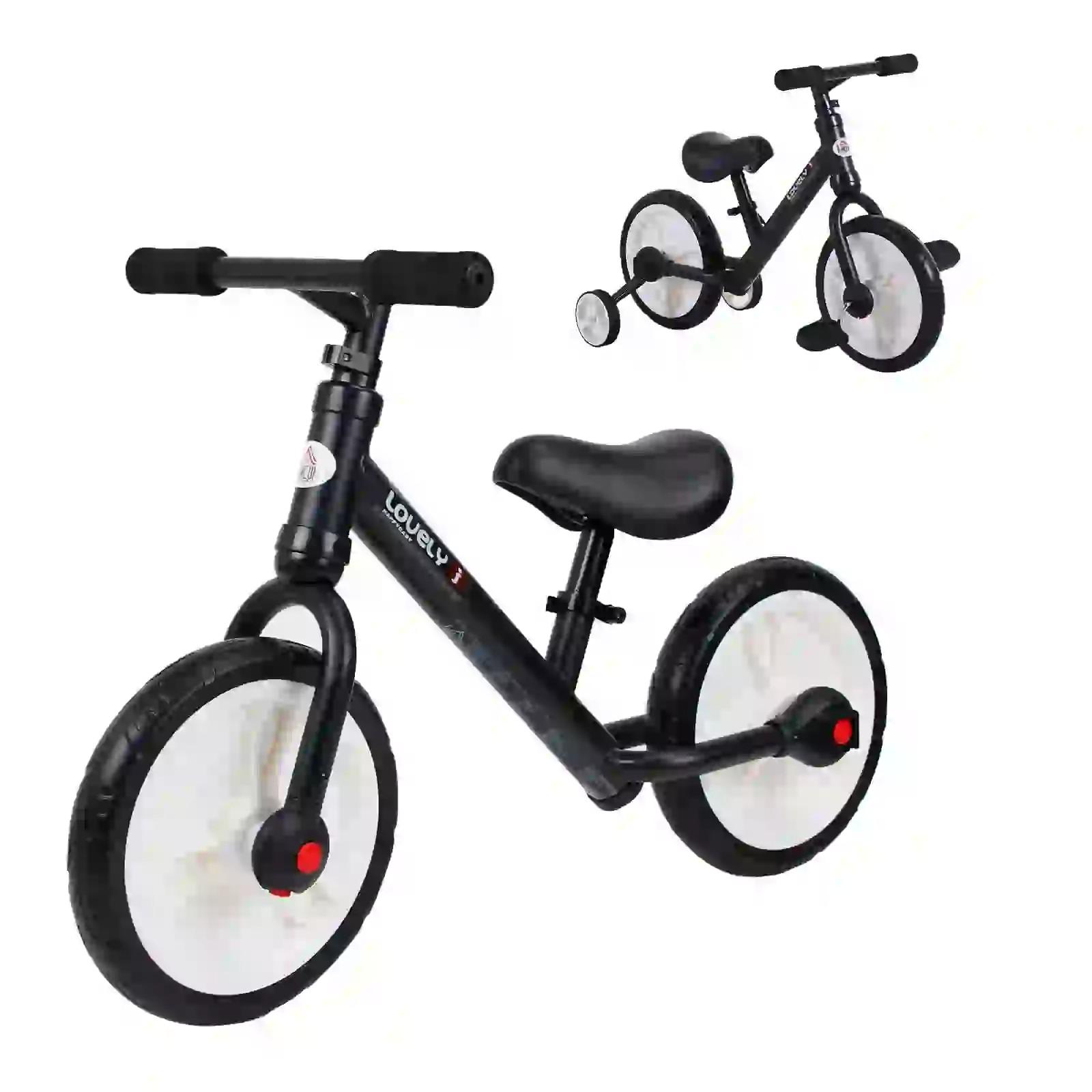 Bicicleta de Equilibrio con Pedales y Ruedas Entrenamiento Extraíbles de Asiento Regulable 33-38cm Niños +24 Meses Carga 25kg Negro