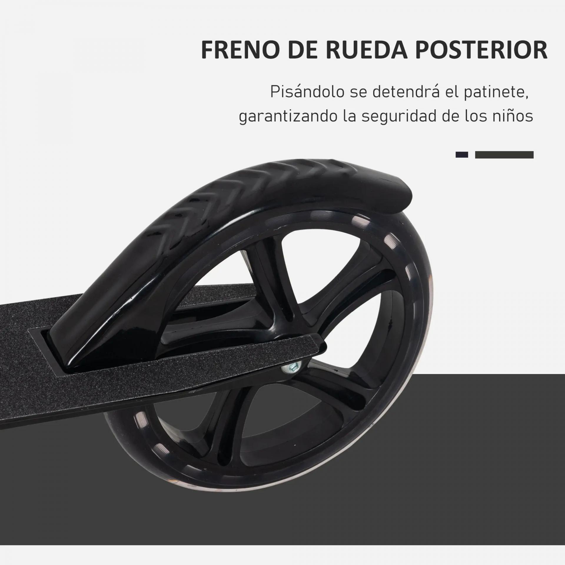 - CONDUCCIÓN SEGURA: Este patinete infantil tiene un freno en la rueda trasera para una conducción más segura. Además, el manillar cuenta con puños antideslizantes para un agarre más firme y seguro