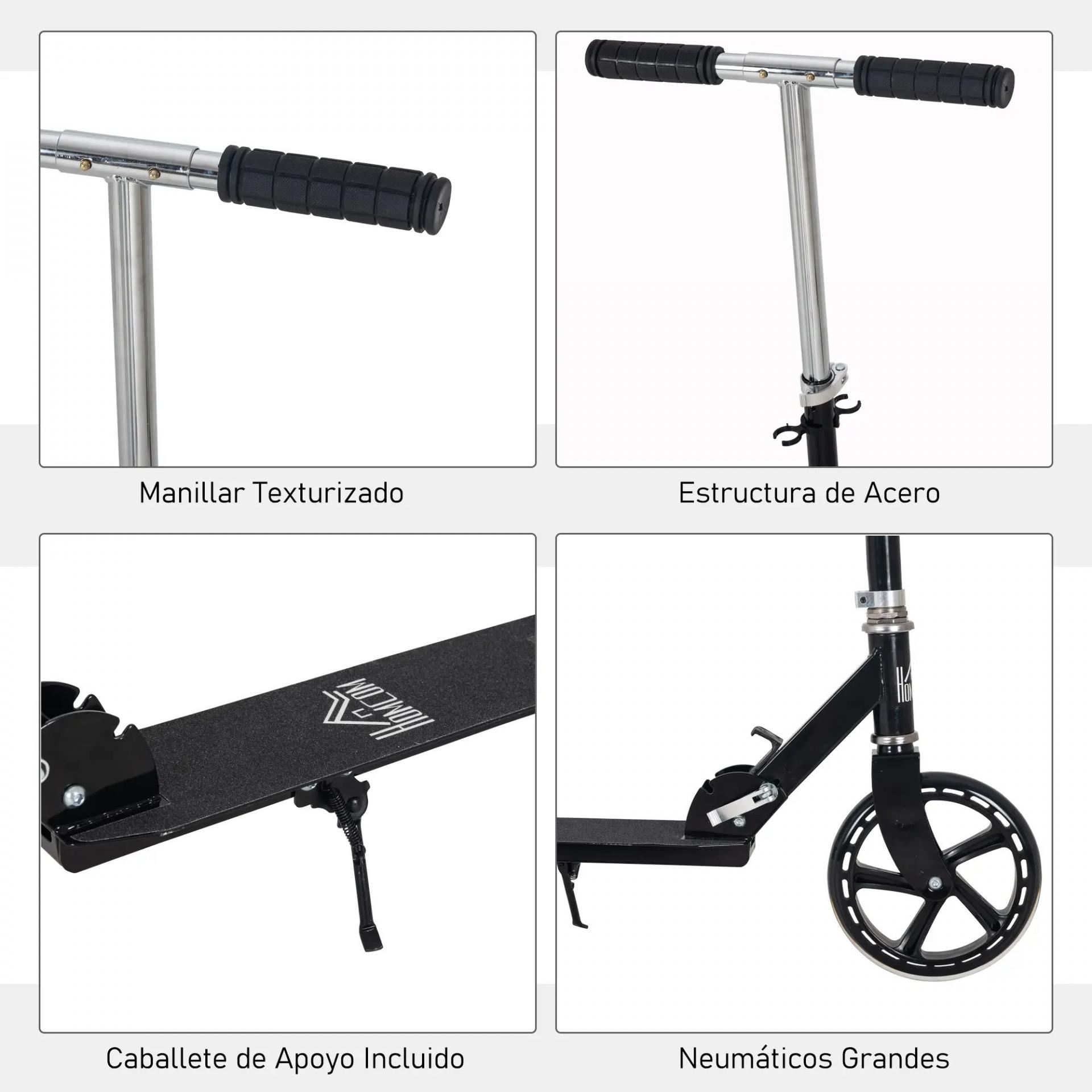 Patinete Plegable para Niños de 7-14 Años Scooter Infantil Manillar Ajustable en Altura de 4 Niveles con Freno 88x37x75-100 cm Negro