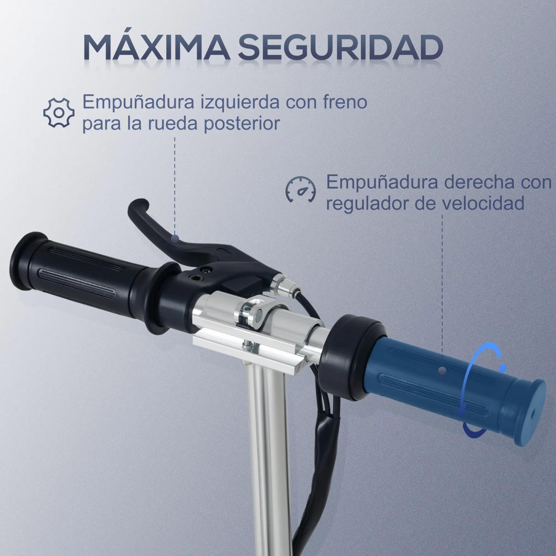 - AJUSTABLE EN ALTURA Y PLEGABLE: El manillar de este patinete eléctrico se puede regular en altura entre 82-93 cm para ajustarse a la estatura del usuario. Se puede plegar para ocupar menos espacio en casa y poderlo dejar en cualquier rincón o transportarlo cómodamente en el maletero del coche