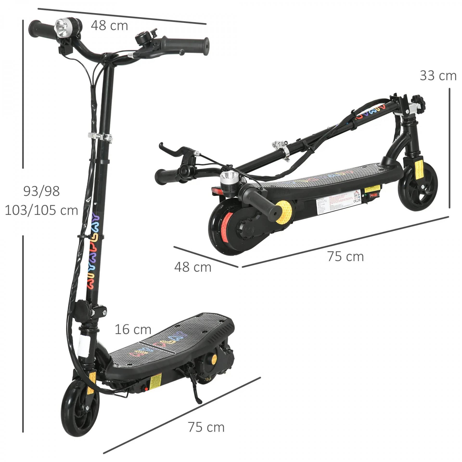 Patinete Eléctrico para Niños de 7-14 Años Plegable con Faro LED Rueda y Freno Velocidad Máxima de 12 km/h Negro
