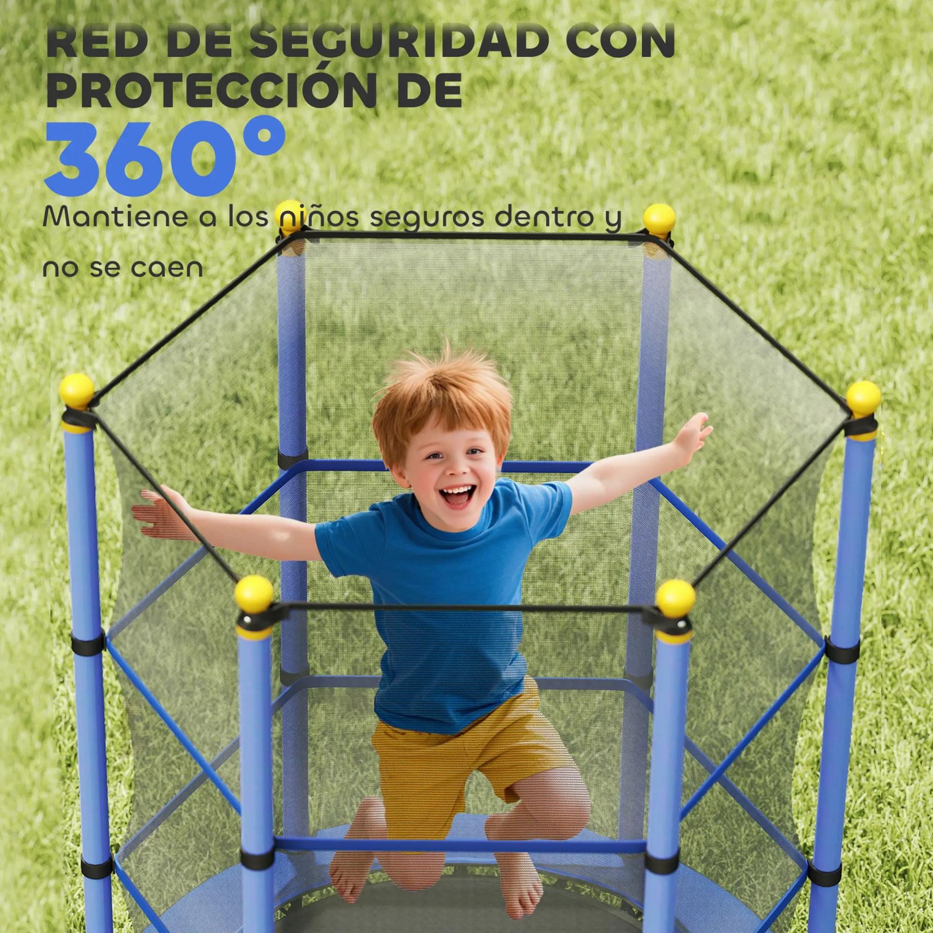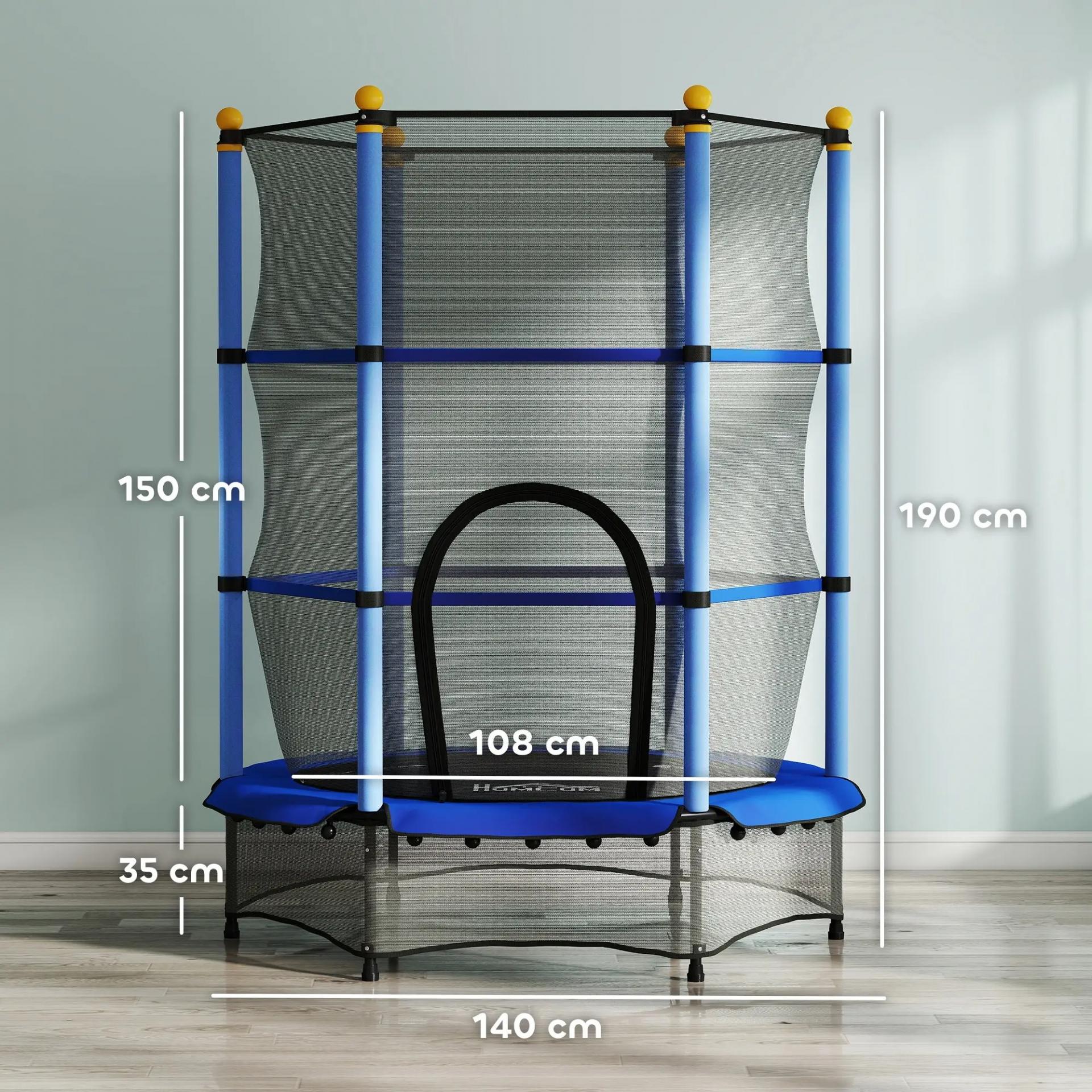 Trampolín para Niños de +3 Años Ø140 cm con Red de Seguridad y Marco de Acero para Interior y Exterior Azul y Negro