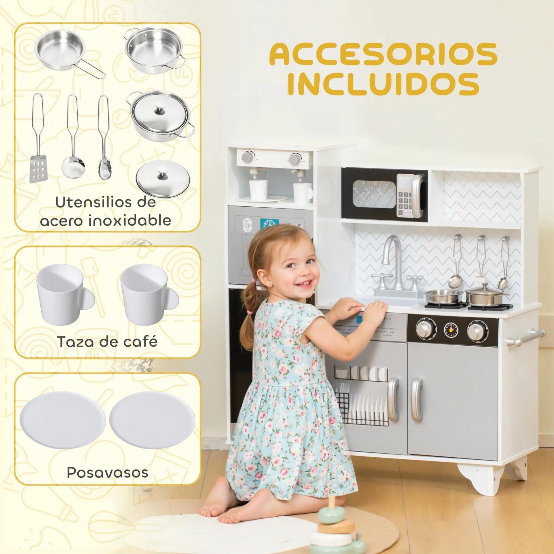 - ACCESORIOS INCLUIDOS: Esta cocina de juguete incluye 6 utensilios de acero inoxidable, 2 tazas de café y posavasos decorativos. Todo para que los pequeños chefs creen historias, estimulando la creatividad y la comunicación en el juego simbólico