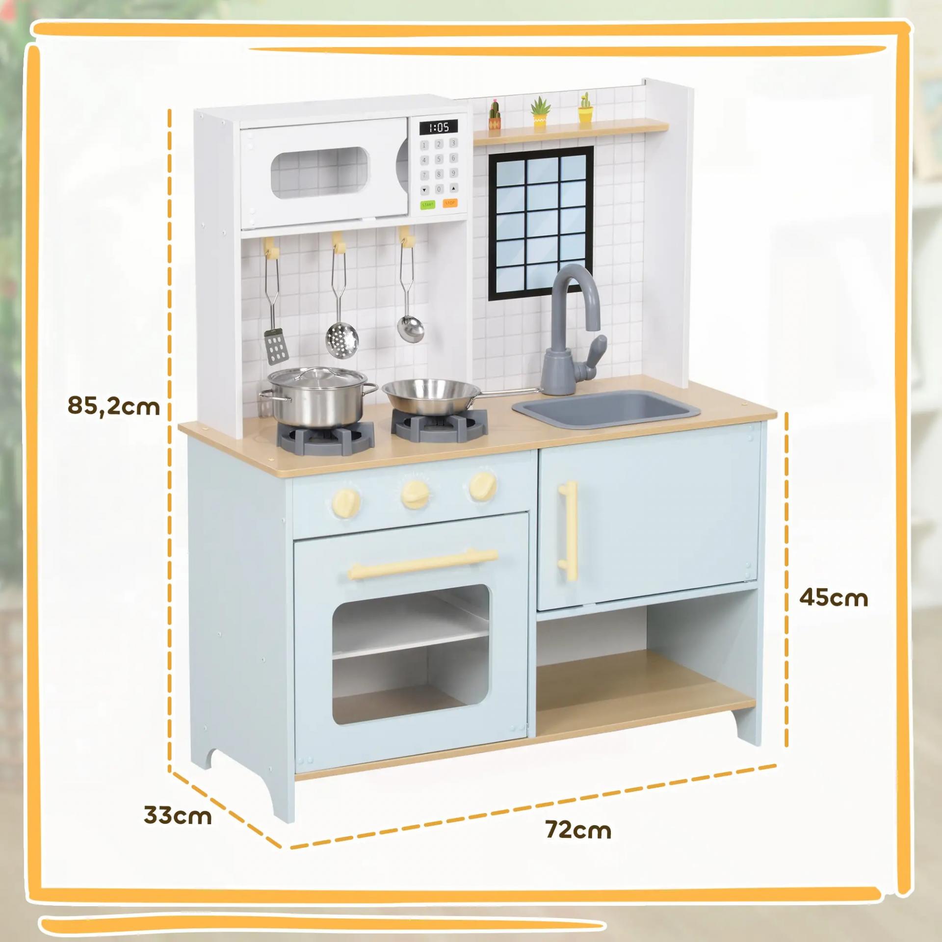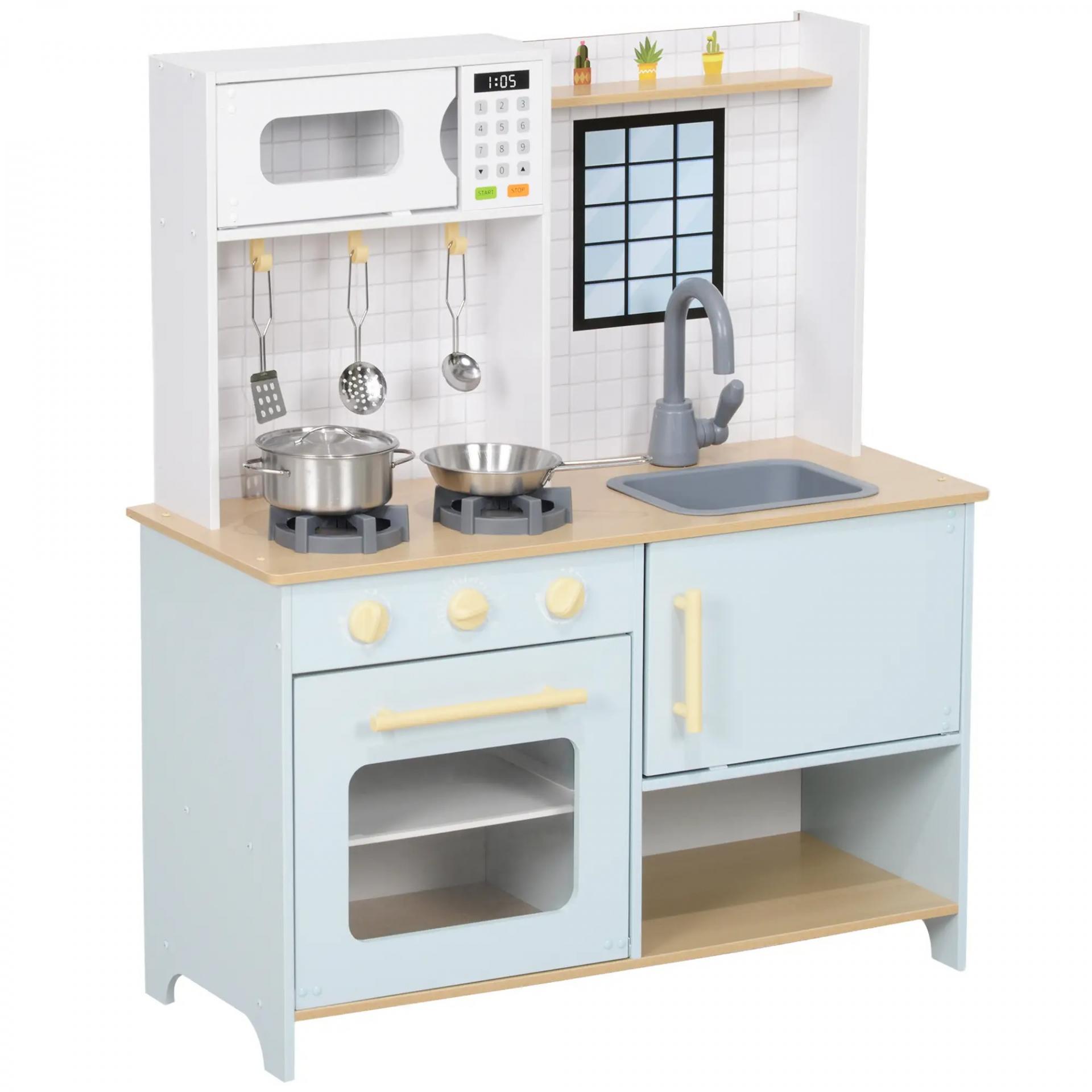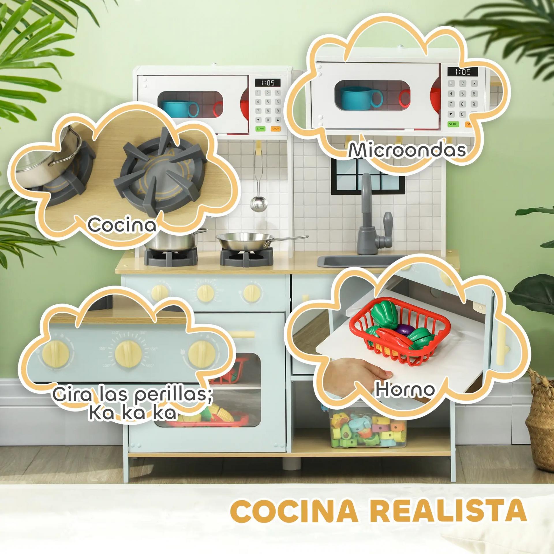 Cocinita Infantil con Sonido Fogón Horno Grifo Fregadero Microondas y Accesorios de Cocina Azul
