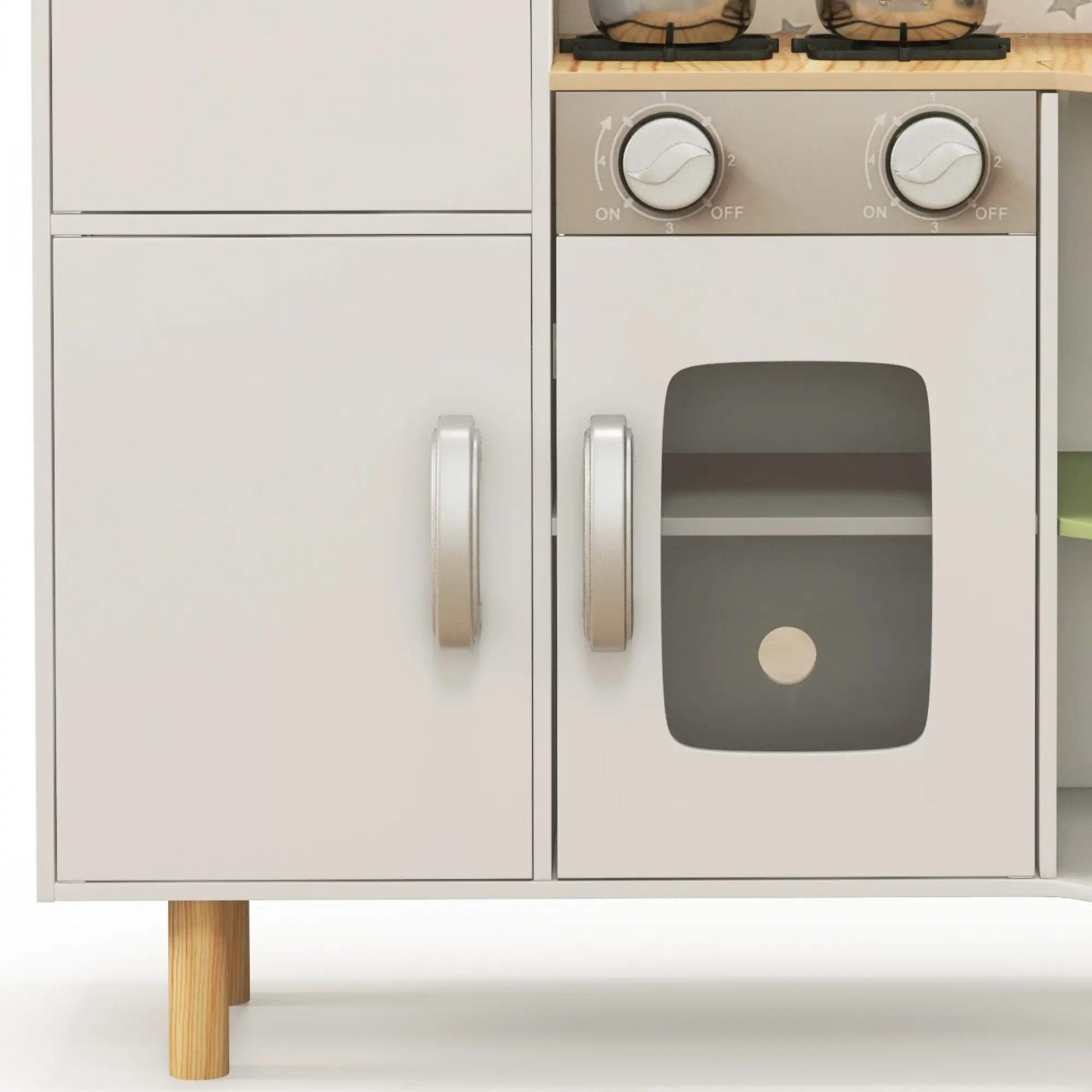 - RESISTENTE Y SEGURA: Cocina infantil hecha de tablero MDF resistente y patas de madera de pino y ha sido completamente probado según las normas de seguridad de juguetes EN71-1-2-3 y EN717-1. Cuenta con una superficie lisa de madera con todos los cantos redondeados y sin rebabas para un uso seguro. Además, la encimera de 49,5 cm de altura se adapta bien a niños de 3 a 6 años