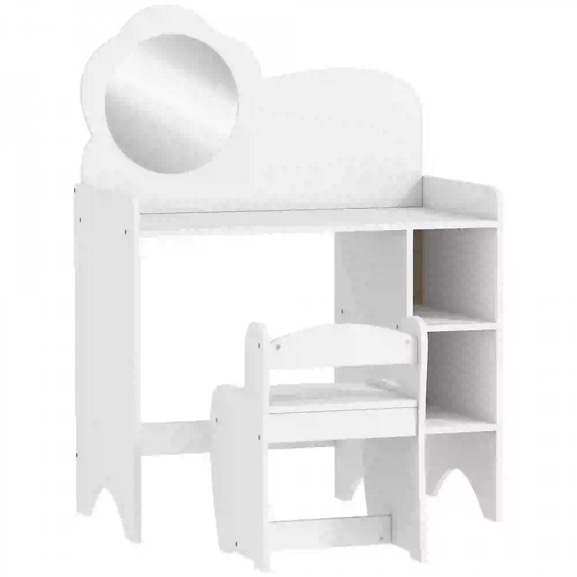 Tocador de Maquillaje Niña 2 en 1 Escritorio con Taburete Espejo Estantes Abiertos para Niños +3 Años Blanco