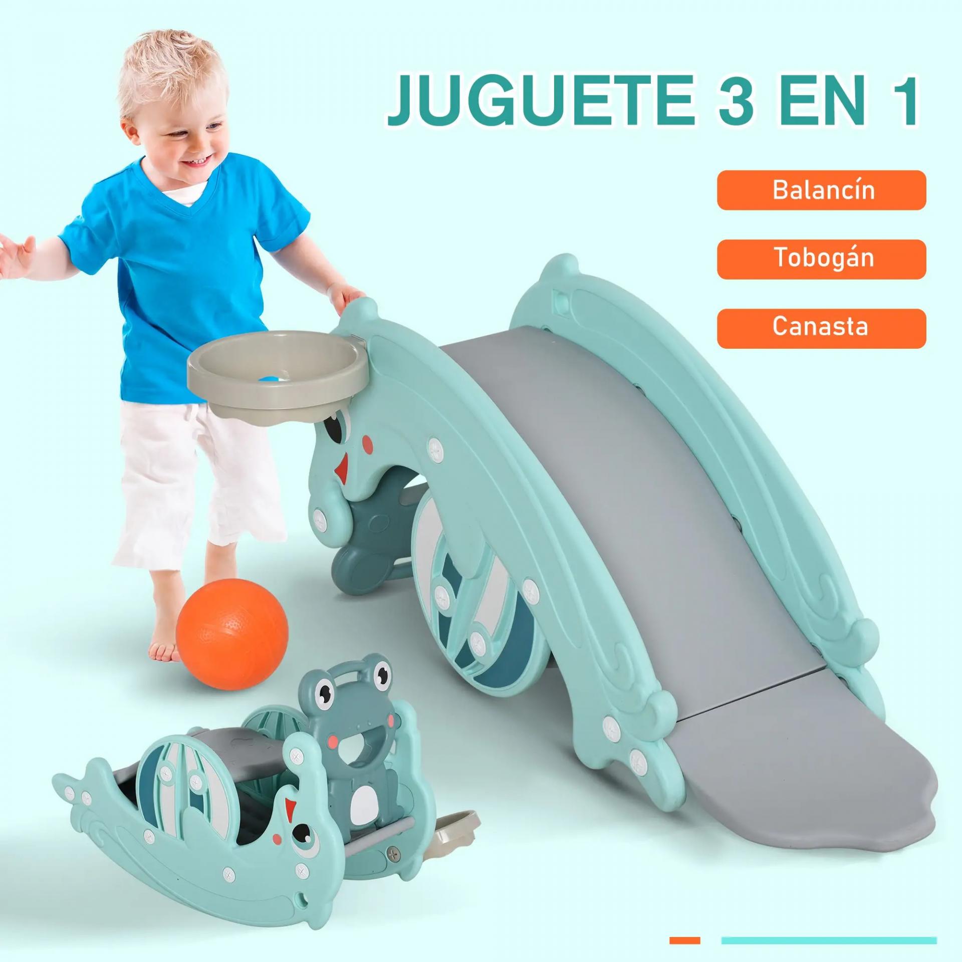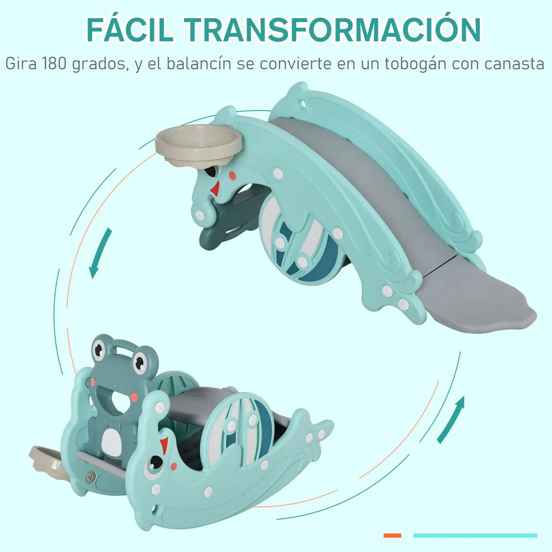 CABALLITO BALANCÍN 3 EN 1: Este juguete se transforma fácilmente en un tobogán infantil y una pequeña canasta de baloncesto, ofreciendo tres formas diferentes de juego para mantener a los niños entretenidos