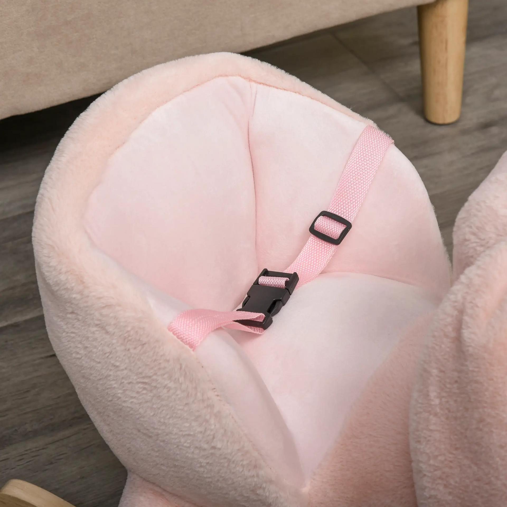 Caballito Balancín Infantil Forma de Conejo de Felpa para Bebés 18-36 Meses con Sonido Cinturón de Seguridad Manillar y Reposapiés 60x33x50cm Rosa