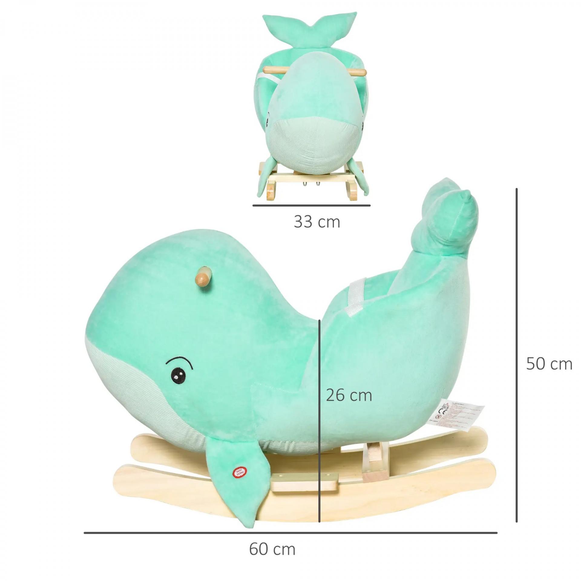 Caballito Balancín Forma Ballena para Niños de 18-36 Meses Mecedora de Felpa con Sonidos Cinturón de Seguridad y Reposapiés 60x33x50 cm Turquesa