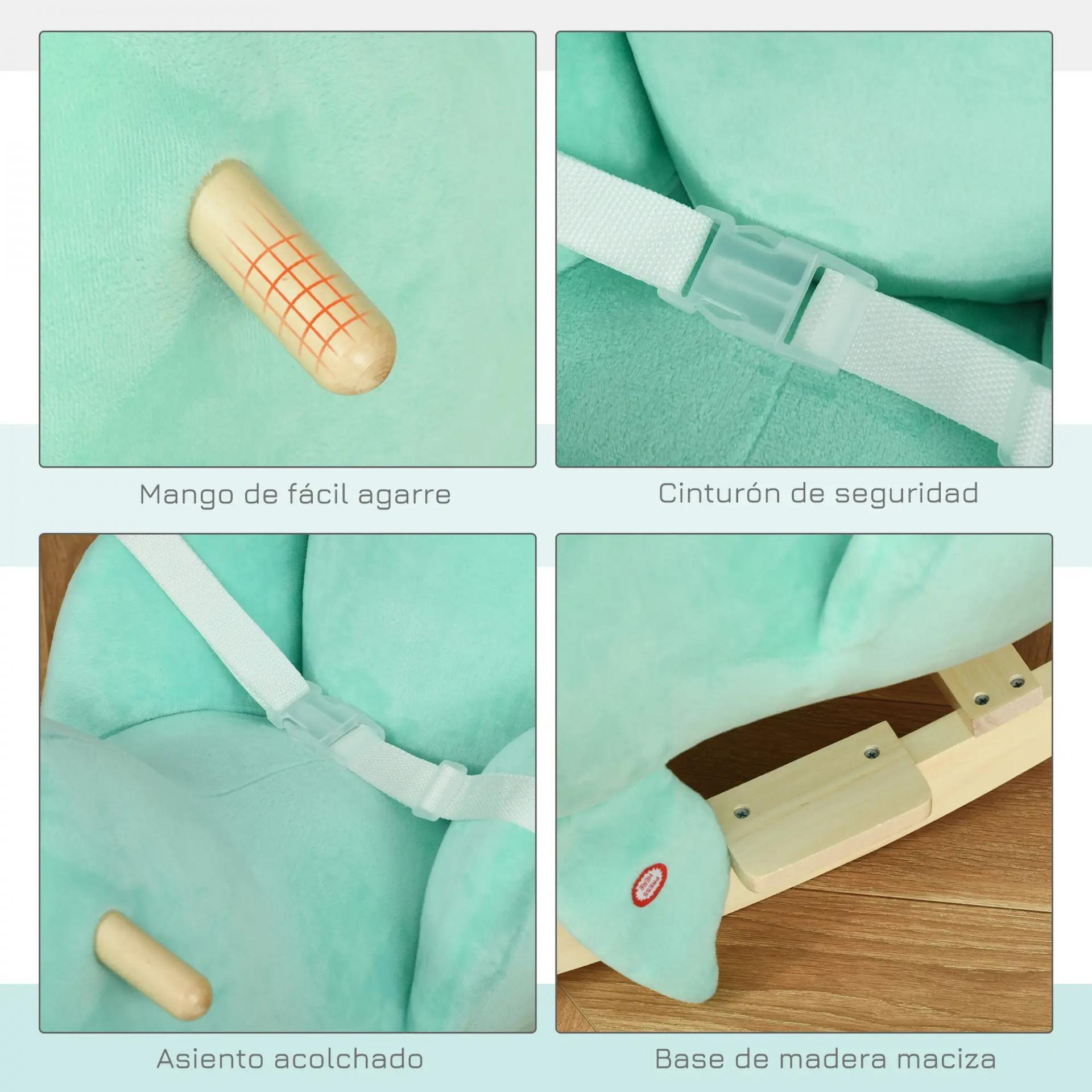 - CINTURÓN DE SEGURIDAD Y REPOSAPIÉS: Especialmente diseñado para los más pequeños, cuenta con un diseño envolvente con respaldo y laterales altos, cinturón de seguridad, apoyapiés y manillar de madera para que puedan agarrarse
