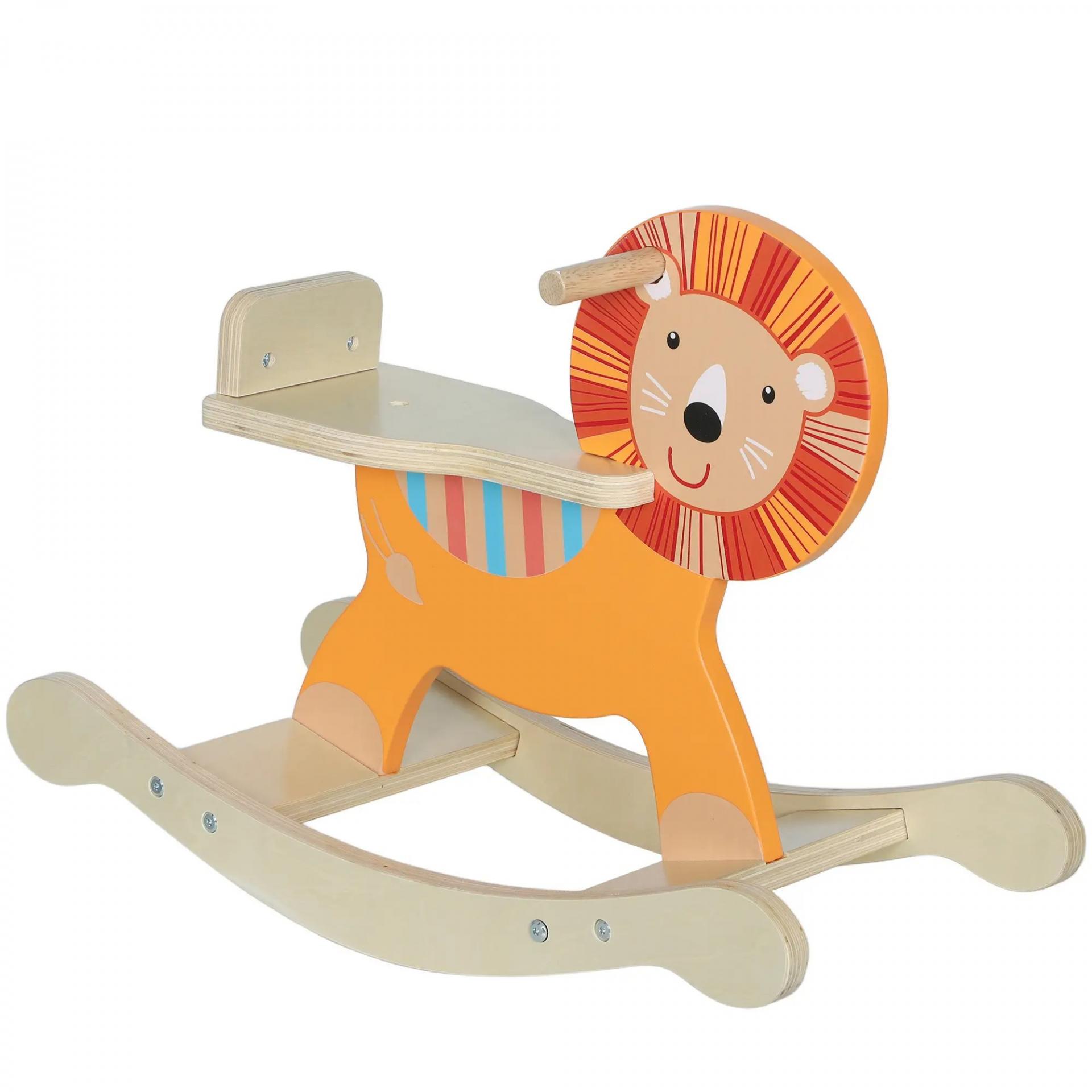 Caballo mecedor con diseño de león, capacidad 25 kg, 2-5 años, madera, naranja