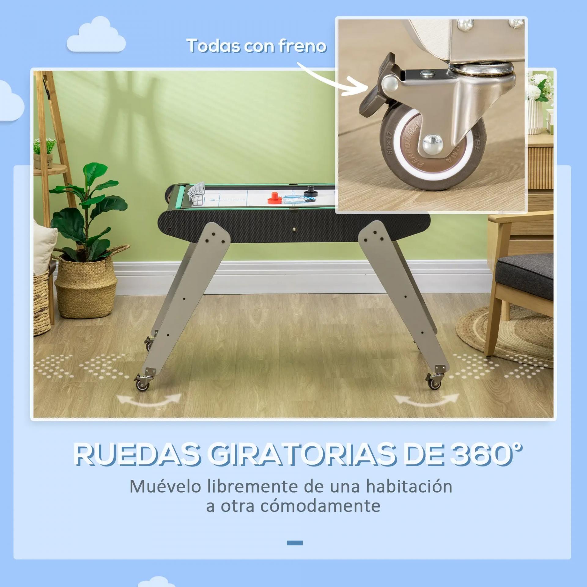 Mesa Multijuegos 6en1 para Niños de +7 Años con Ruedas Billar Futbolín Ping-Pong Anillas Hockey 120x88x79cm Negro