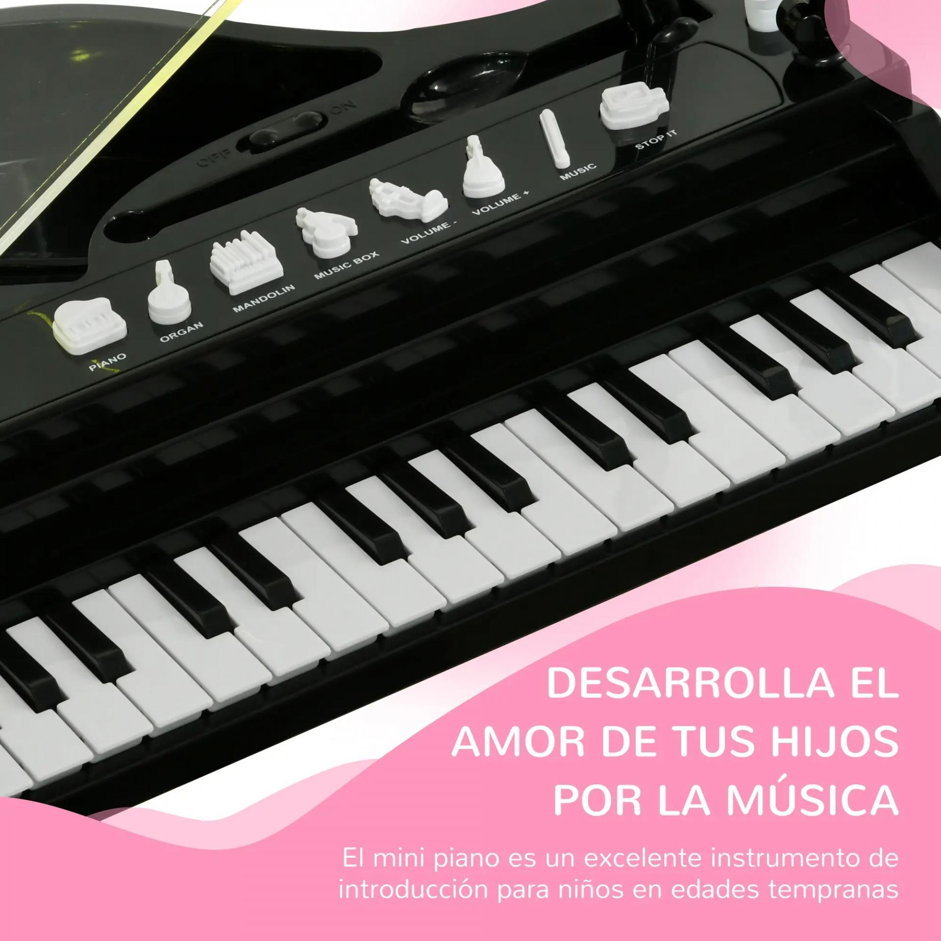 - INCLUYE BANCO Y ES EDUCATIVO: Este piano infantil viene con un banco para que los niños se sienten cómodamente mientras aprenden y tocan diversas canciones. Es una excelente manera de fomentar el interés por la música y al mismo tiempo ayuda en el desarrollo de habilidades cognitivas