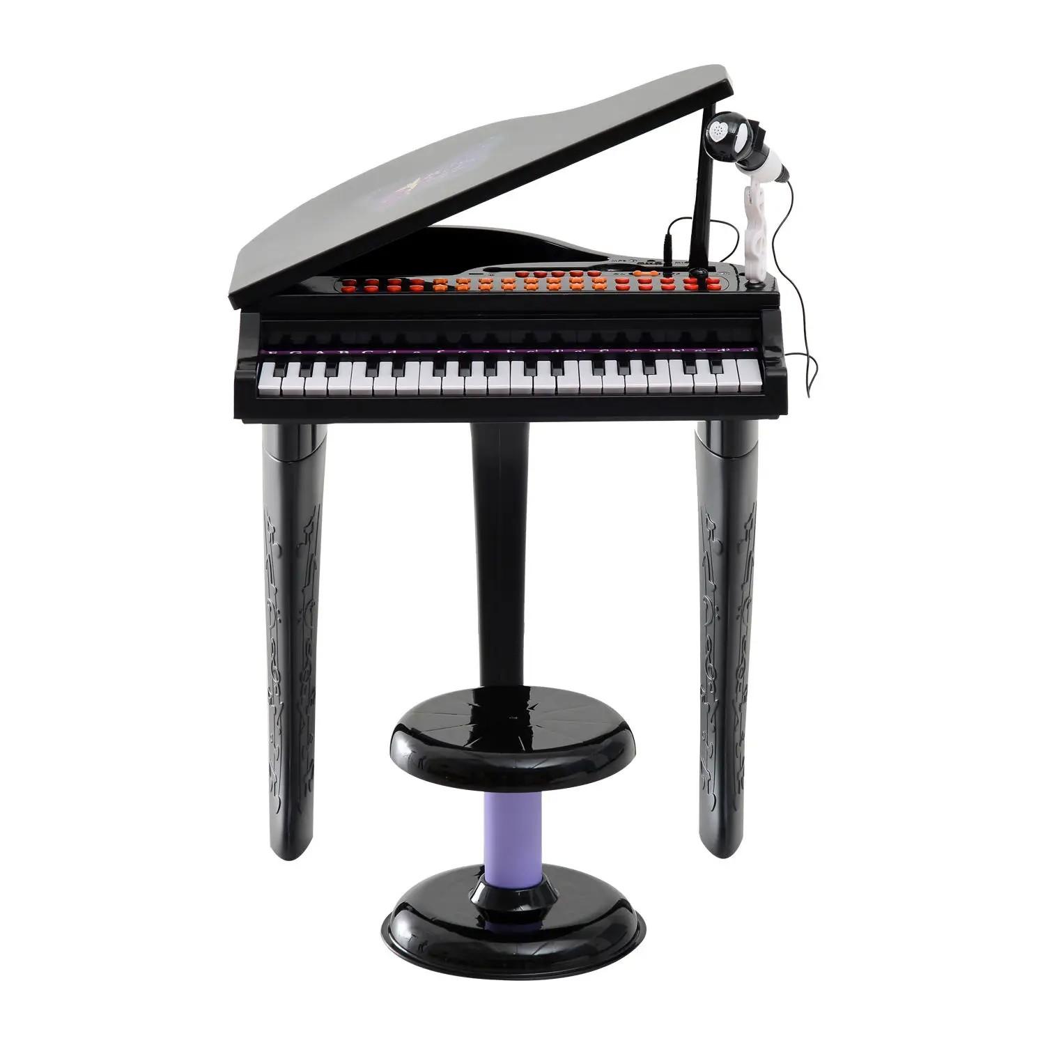 Piano Infantil 37 Teclas Teclado Electrónico Juego de Piano con Micrófono Taburete Luces y 22 Canciones USB/MP3 Karaoke Modo de Enseñanza Negro
