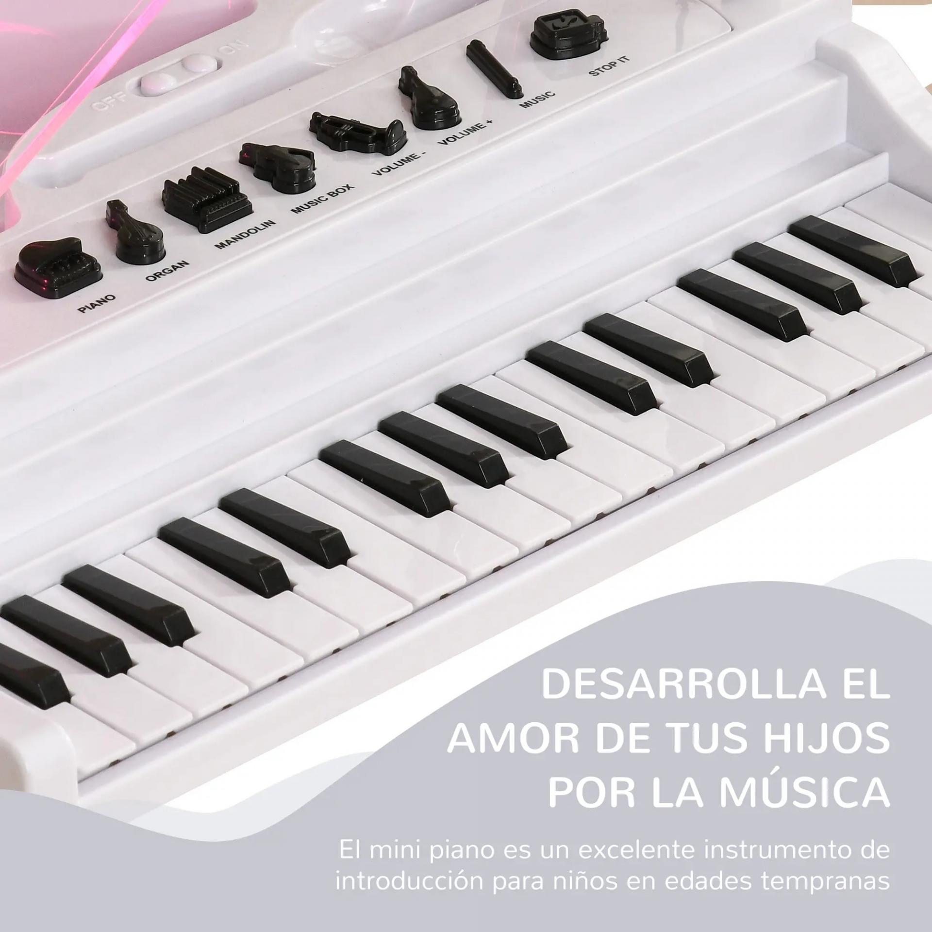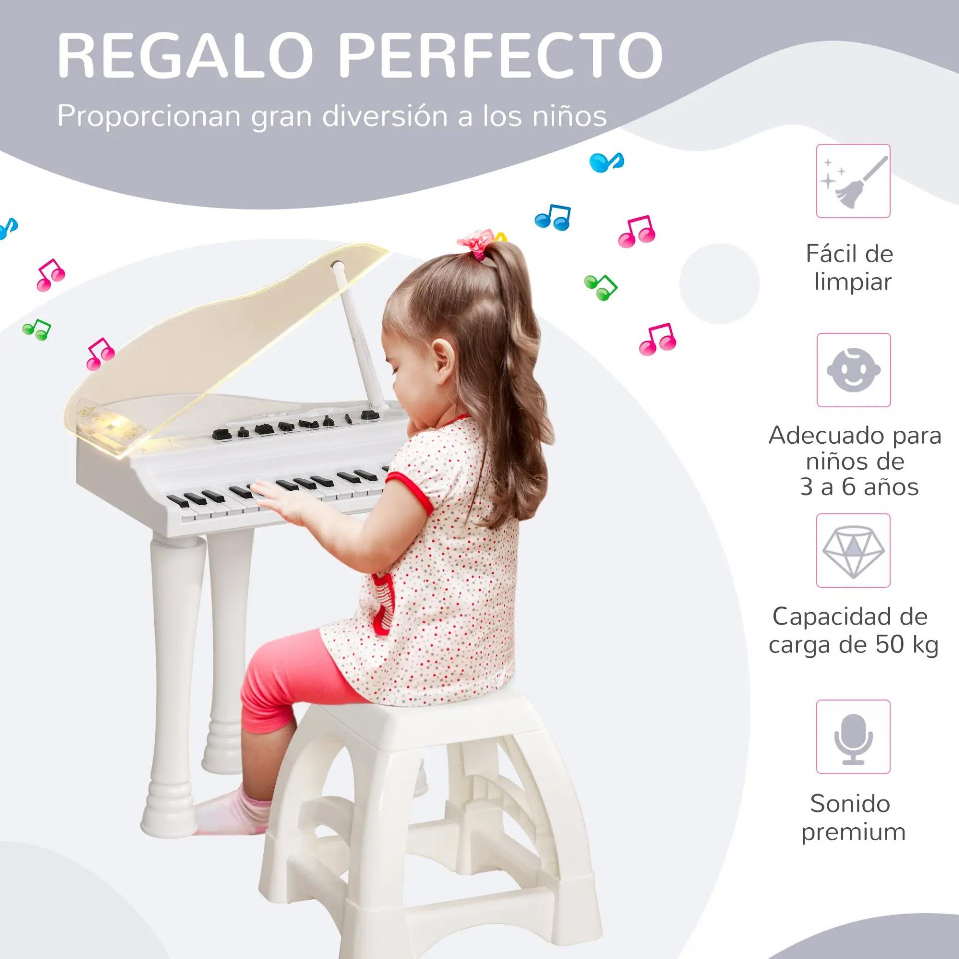 - INCLUYE BANCO Y ES EDUCATIVO: Este piano infantil viene con un banco para que los niños se sienten cómodamente mientras aprenden y tocan diversas canciones. Es una excelente manera de fomentar el interés por la música y al mismo tiempo ayuda en el desarrollo de habilidades cognitivas