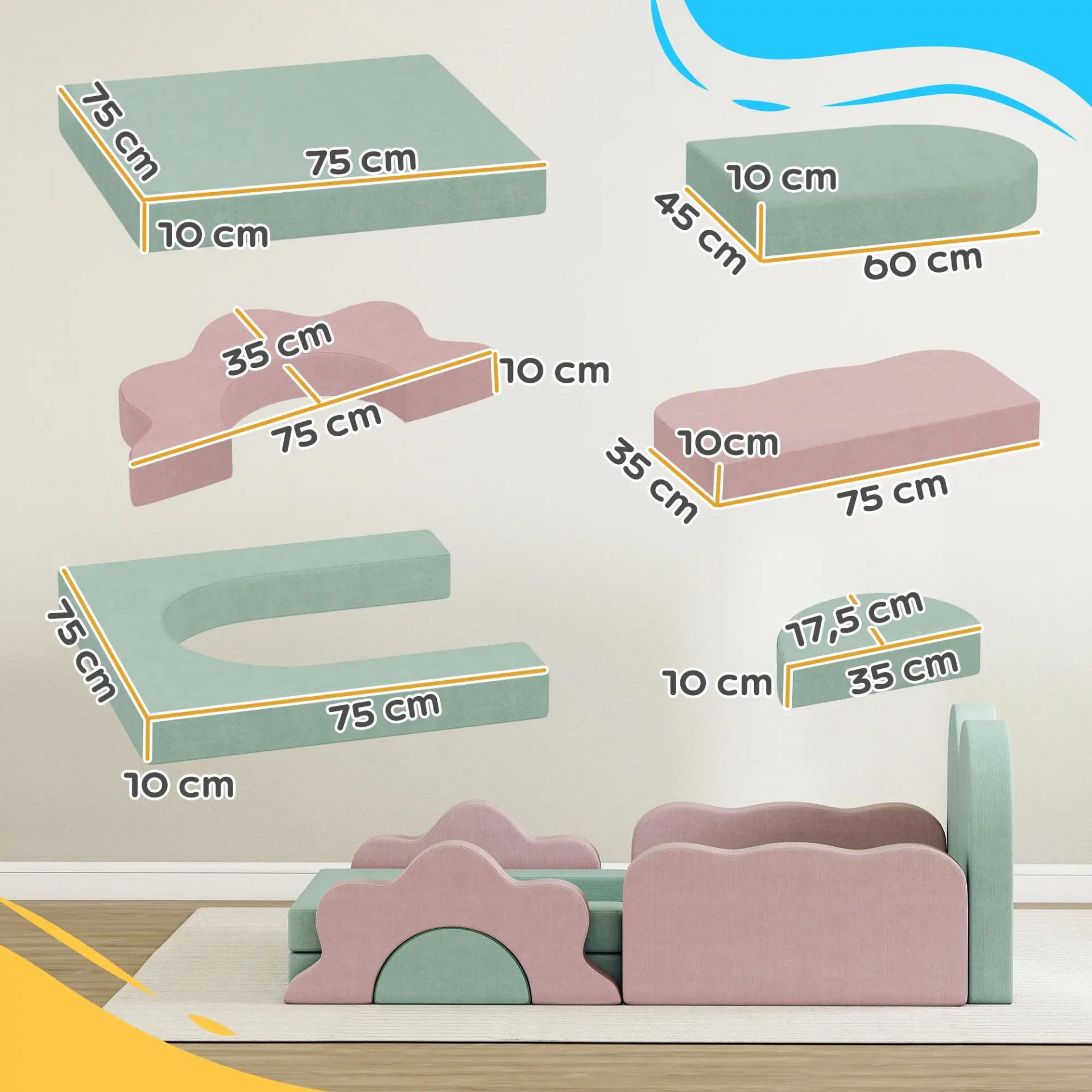 Muchas posibilidades de juego: ¡Desata la imaginación de tu hijo! Este set de 12 bloques suaves en forma de flores y olas se transforma en un acogedor sofá de juego, castillos creativos, encantadores palacios o un rincón de lectura relajado.