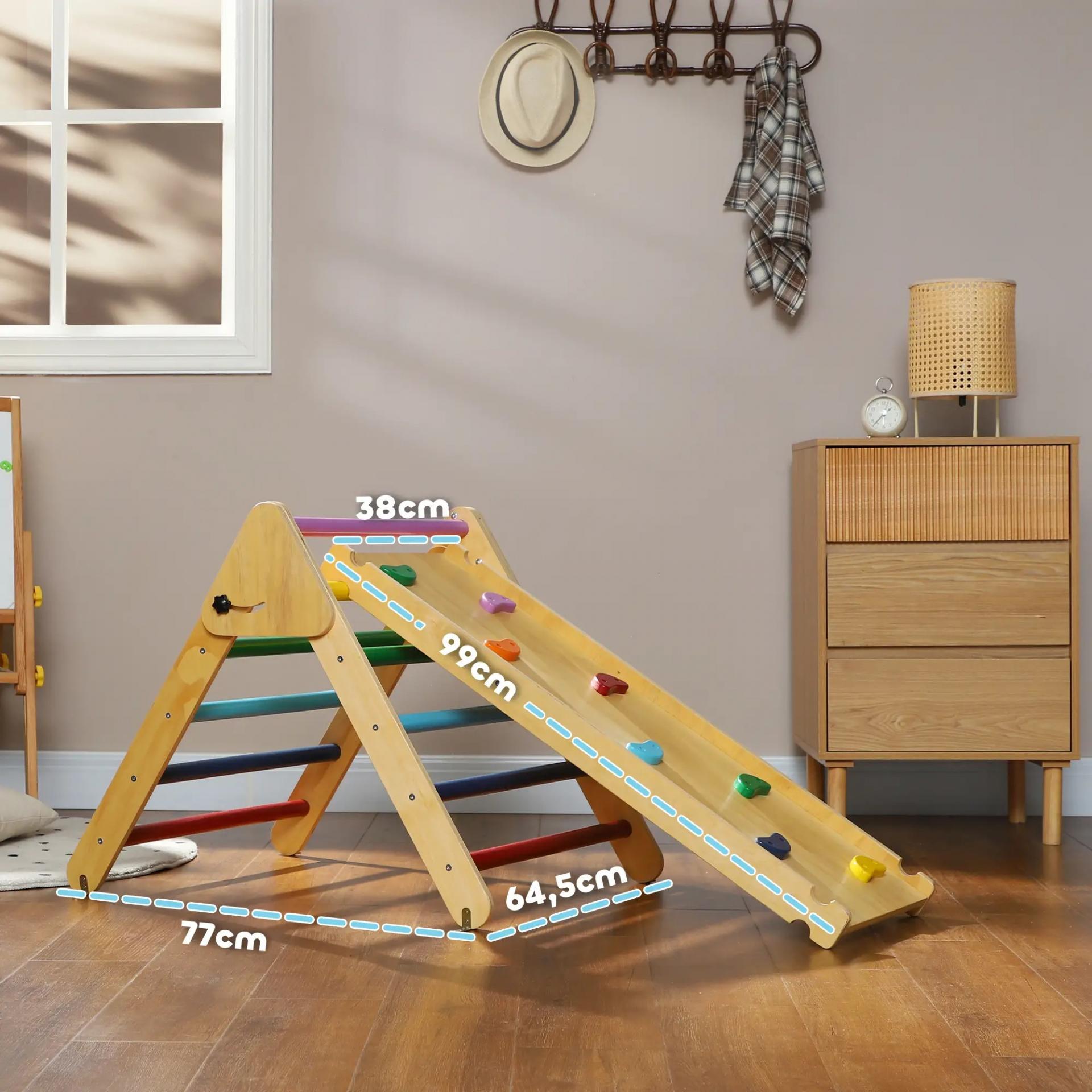 Triángulo de Escalada de Madera 3 en 1 con Rampa para Deslizarse o Escalar 147x64,5x63 cm Multicolor