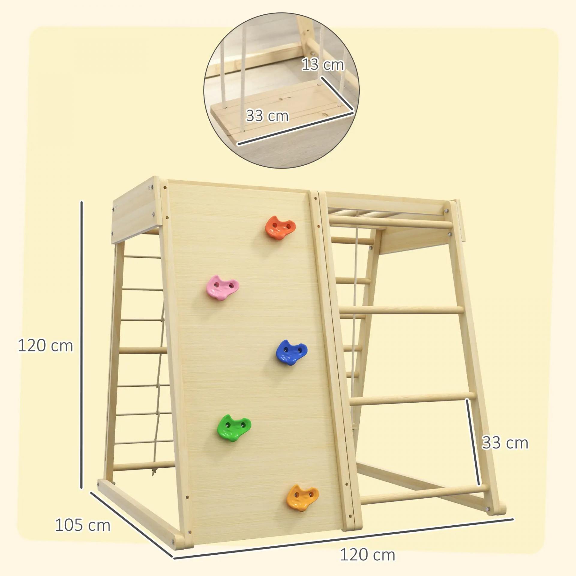 DIVERSIÓN GARANTIZADA: Con un muro de escalada, una red para trepar, una escalera de madera, una escalera horizontal superior y un columpio, este juguete doméstico mantendrá a los niños entretenidos durante horas