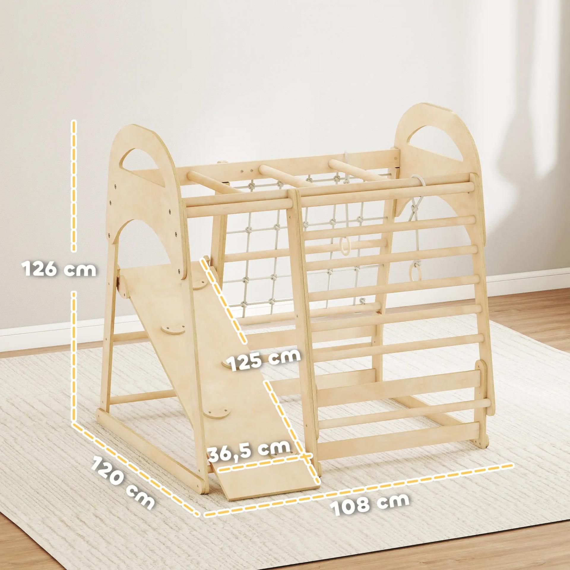 Estructura de escalada, diseño 6 en 1, rampa, barras de escalada, pared de escalada, escalera, red de escalada, 3-6 años, madera