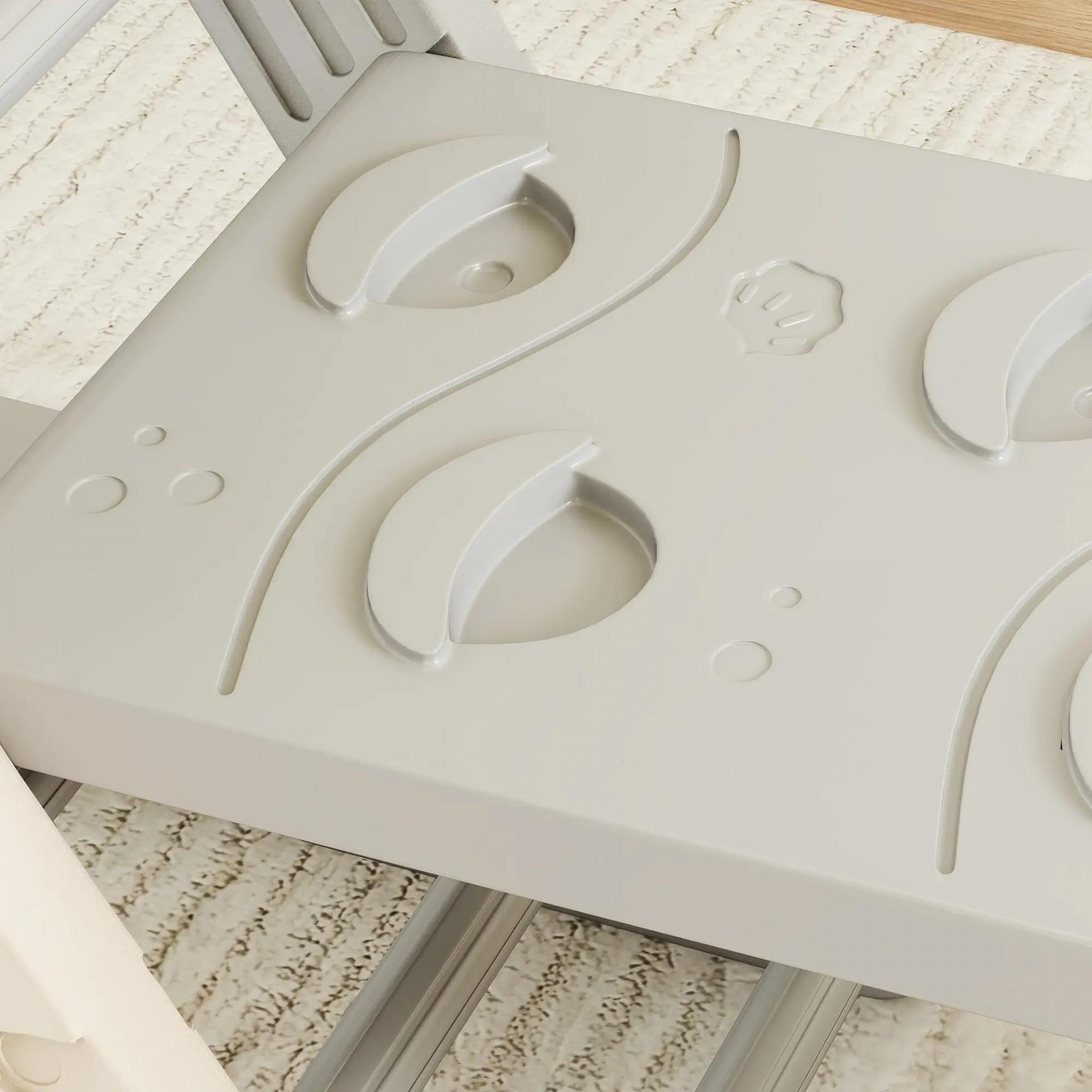 - Diseño reversible: Con una superficie de deslizamiento suave en un lado y surcos para escalar en el otro. Los niños pueden engancharlo en cada nivel del triángulo para variar la altura. El arco escalador también funciona como un balancín, para ejercicios de equilibrio y juegos creativos en un conjunto compacto.