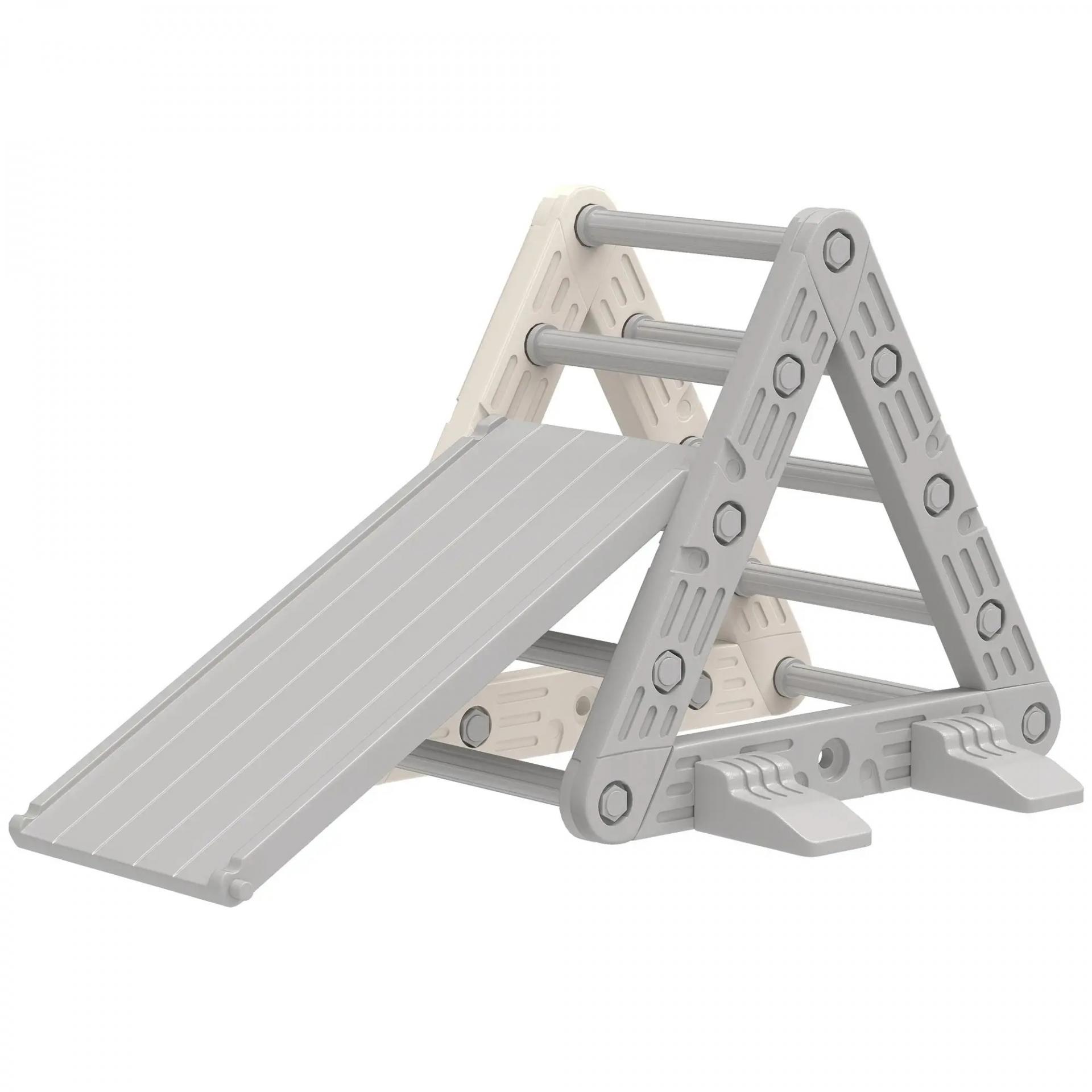 Triángulo de Escalada para Niños de 18-48 Meses con Tobogán y Rampa Escalador 130x80x69 cm Gris y Blanco