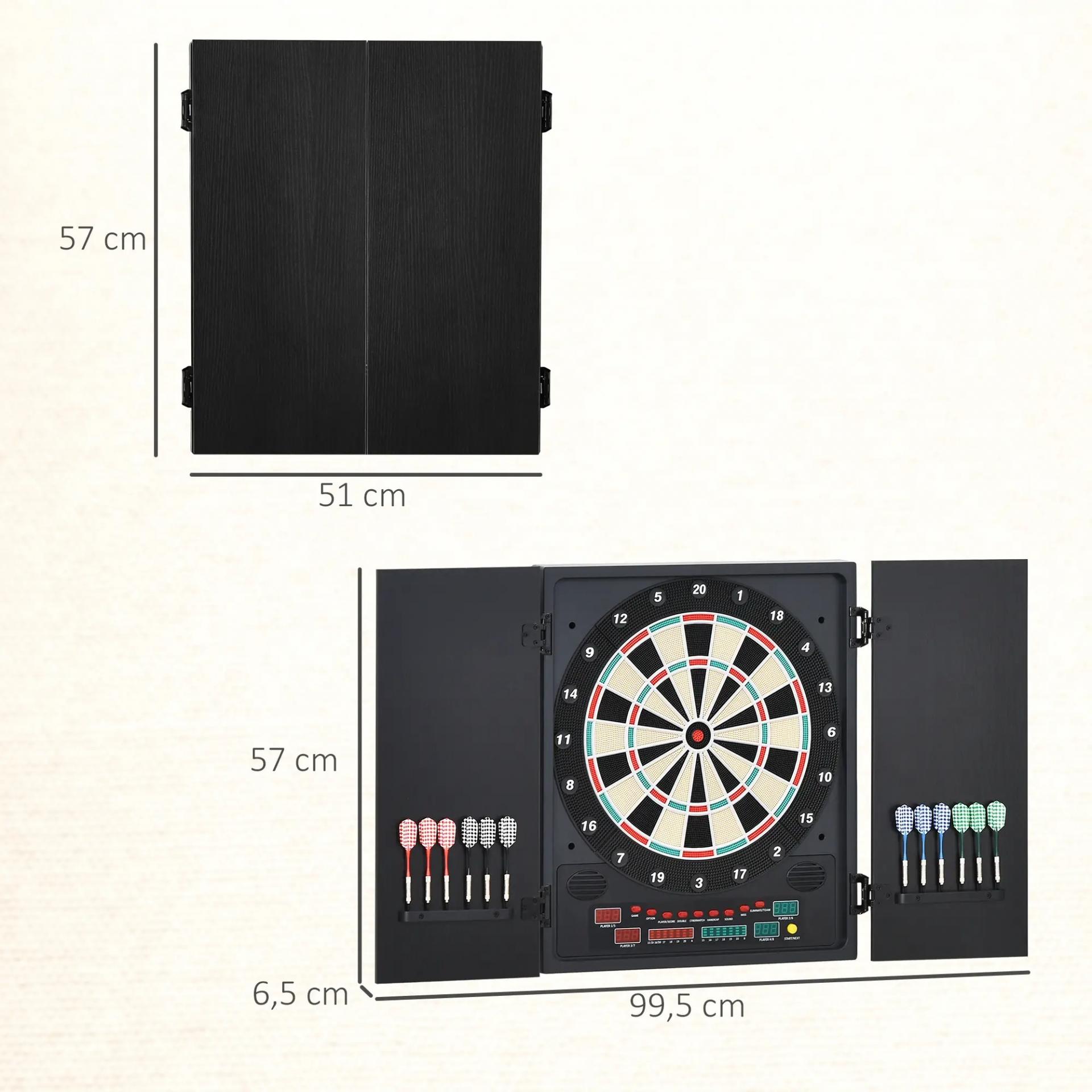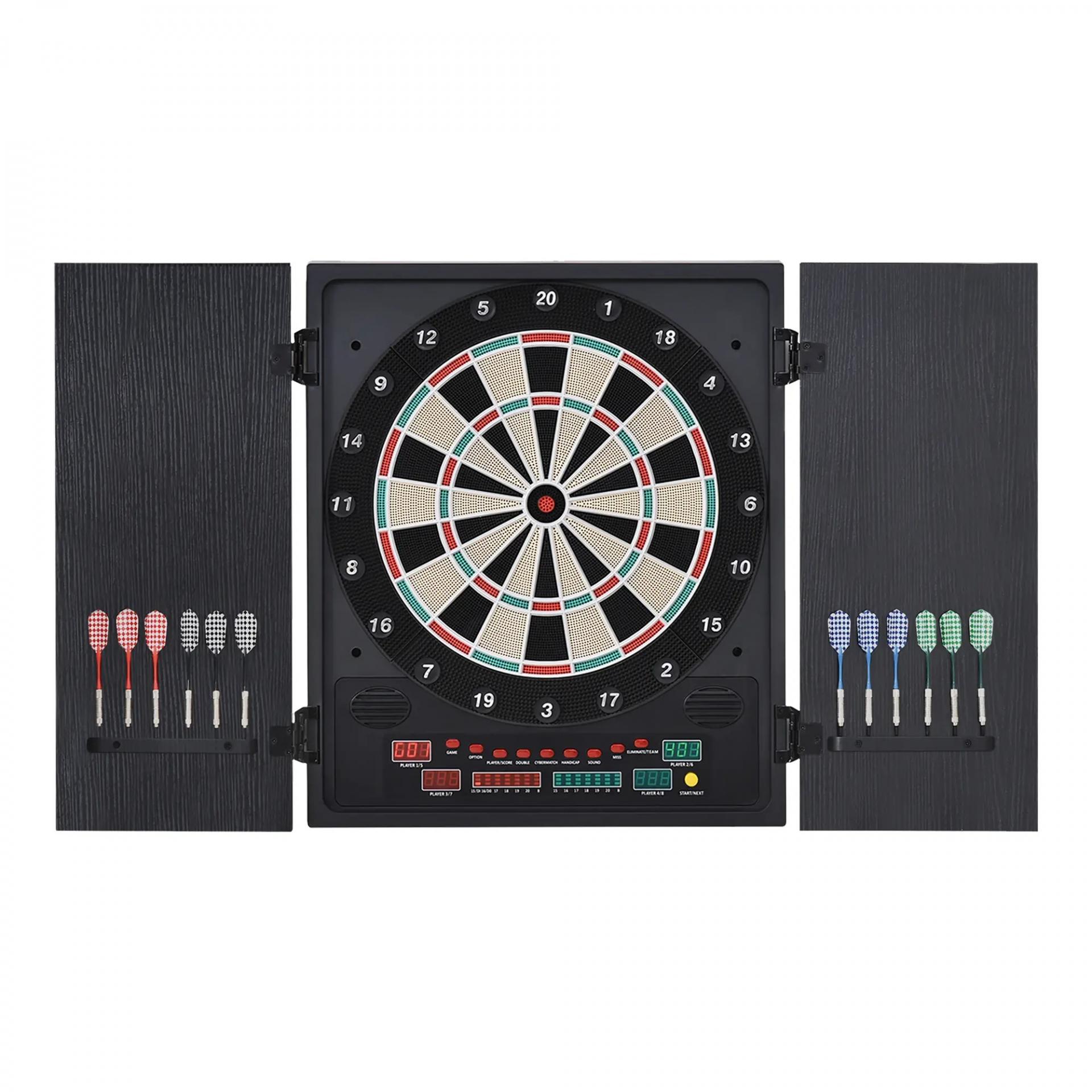 Diana Electrónica Digital hasta 8 Jugadores con 12 Dardos y 30 Puntas con Pantalla LED Puertas 27 Juegos Distintos y 202 Variantes 51x6,5x57 cm Negro