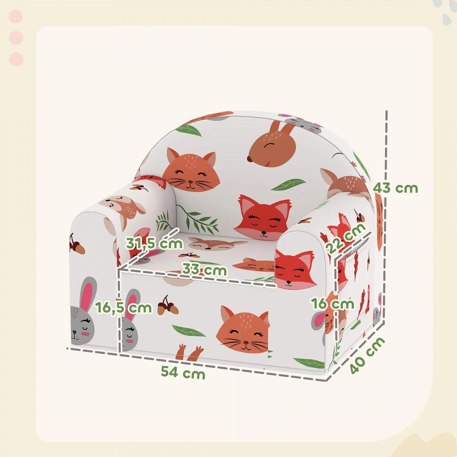 Sillón Infantil con Estampado de Zorros Sofá para Niños de 18-36 Meses con Funda Extraíble y Bolsillo 54x40x43 cm Blanco