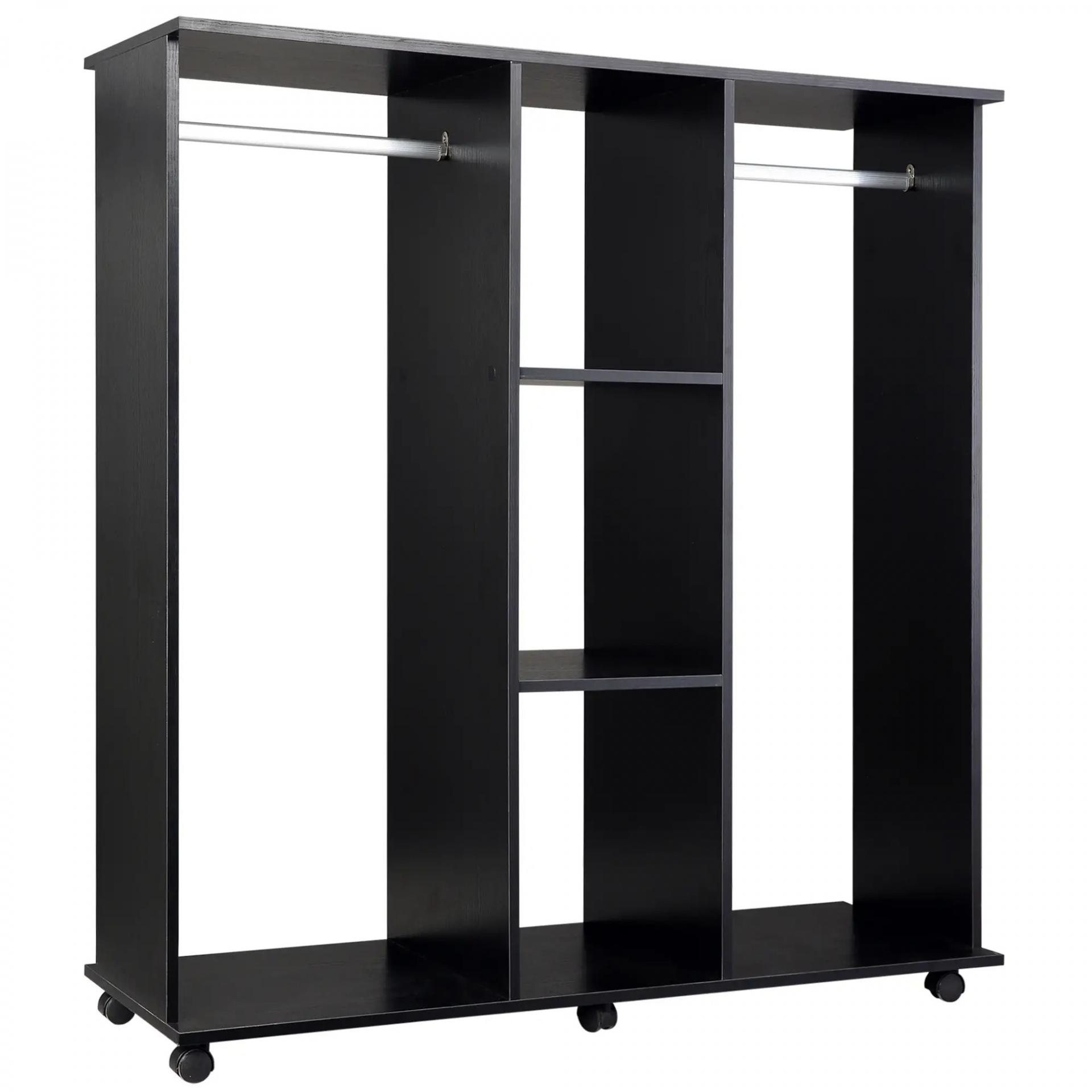 Armario Abierto con Ruedas 2 Barras y Estantes para tener Ropa Colgada y Doblada en el Dormitorio 120x40x128 cm Negro